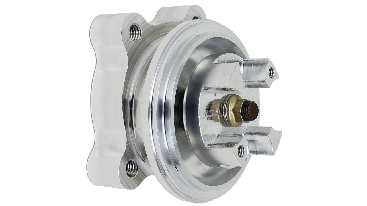 This adaptor kit allows for your existing pump to be clamped to an offset magneto drive. This kit includes a bolt on aluminum adaptor flange with a Viton seal, a steel threaded hex adaptor shaft, an aluminum Rotex coupler and flanged 3/8-24 hex nut.