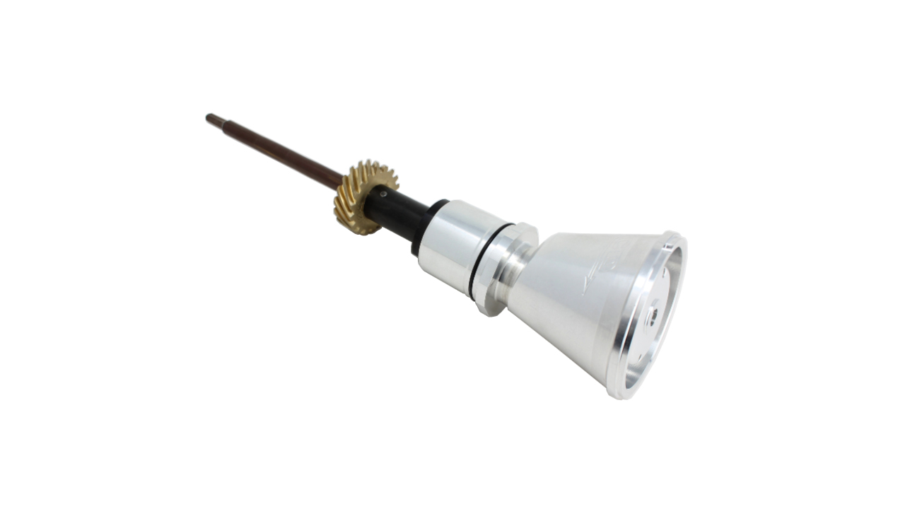 A unique RCD innovation made to work with TFX, BAE, 481 X, 426, and KB (available for 392/417 Donovan on special order)engine blocks, this drive angles the magneto 10 degrees to clear the cylinder heads, blower and manifold. The one piece billet aluminum housing has face and cylindrical 'O" rings to seal the base to the engine block. A heat treated and ground 300M shaft connects the aluminum-bronze drive gear to a universal joint. Roller and thrust bearings control the up and down location of the drive gear. This drive has a weight of less than 3 lbs.