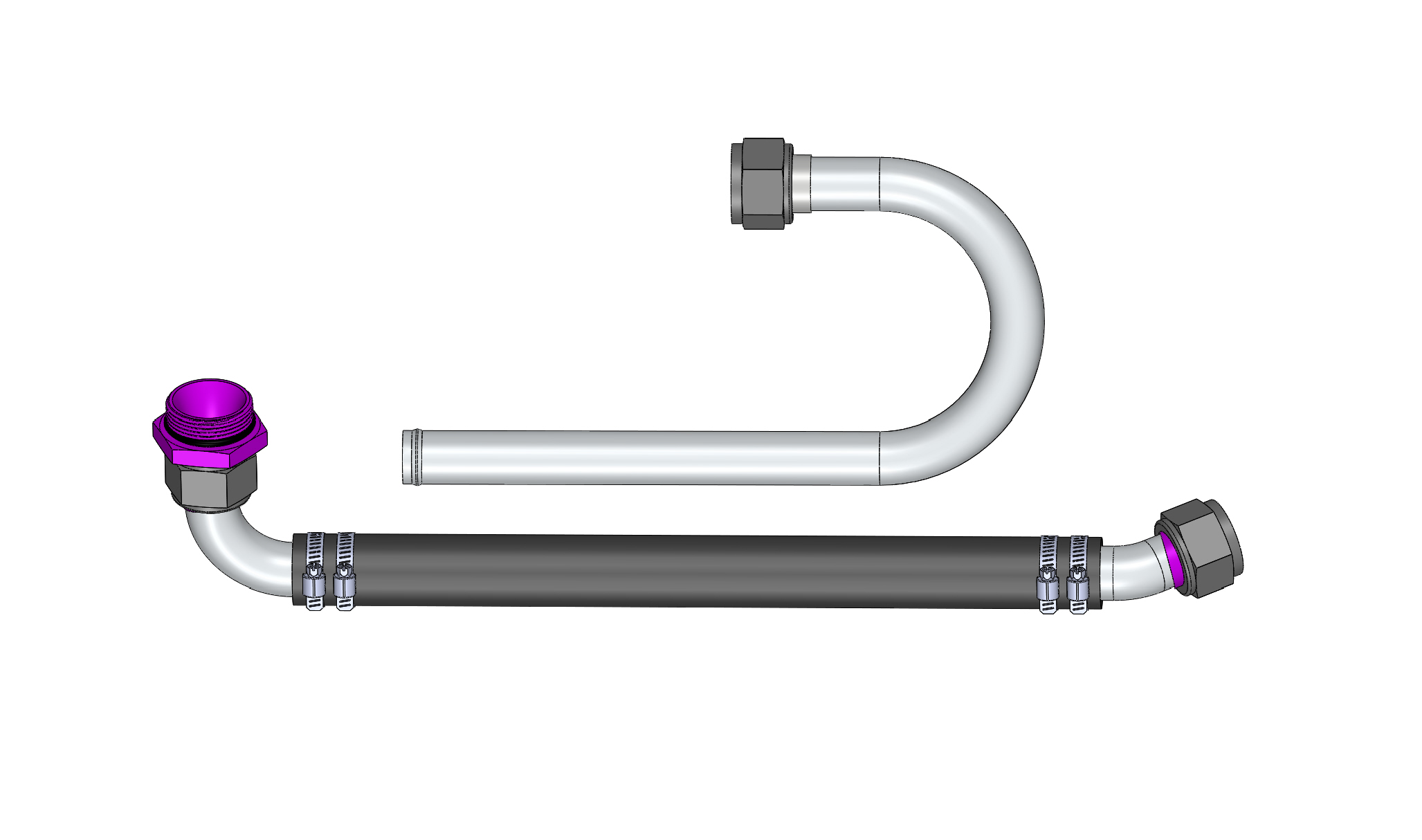 This kit plumbs a wet sump pump to an oil pan with a purple -16 fitting.