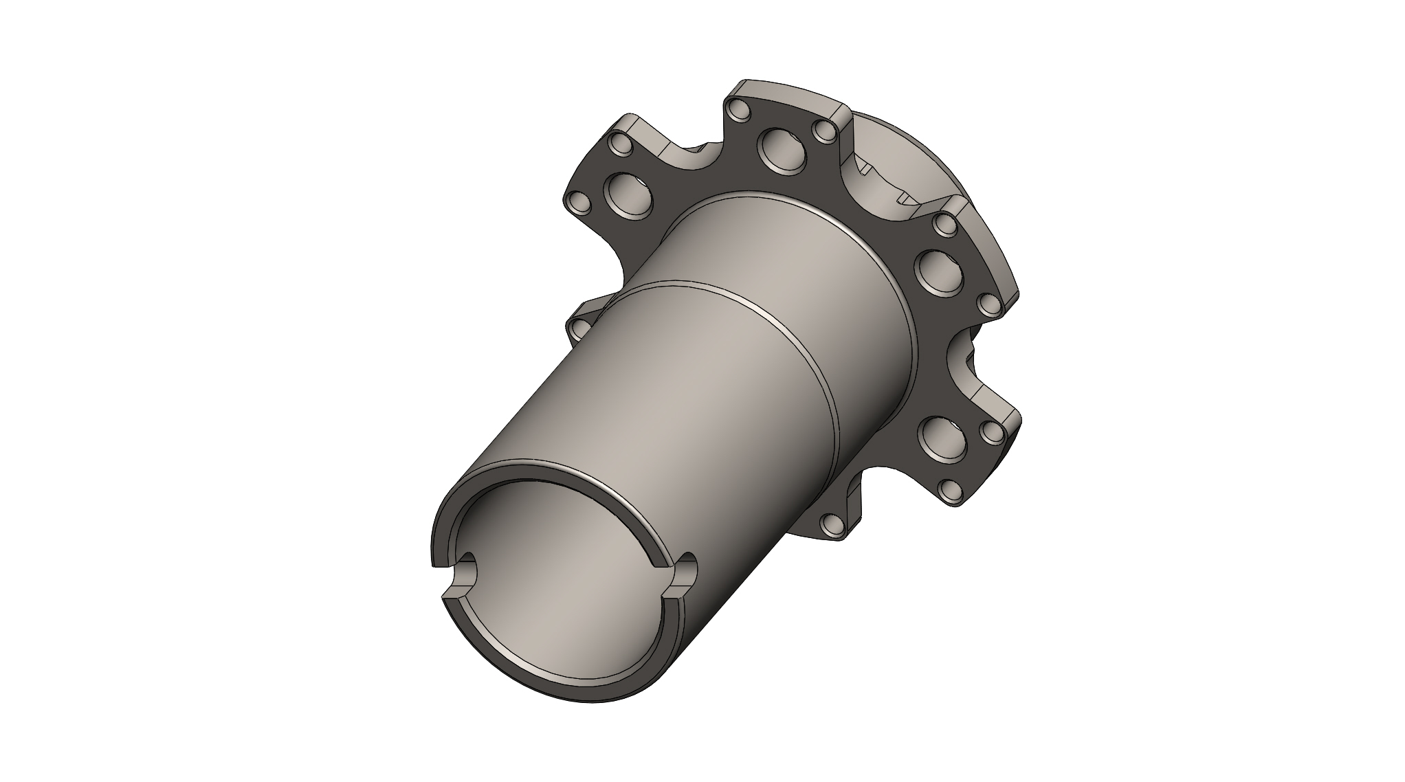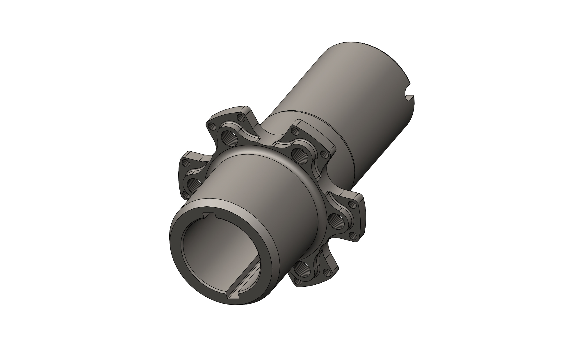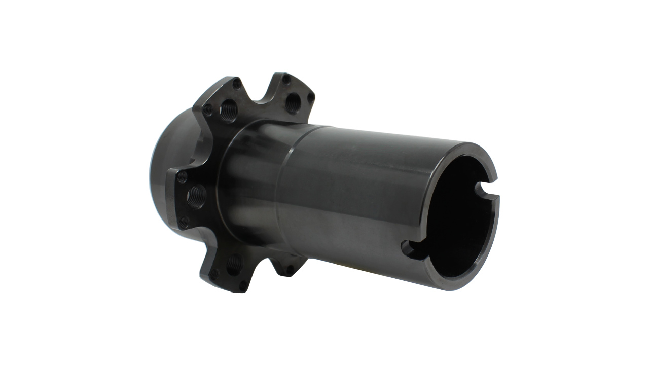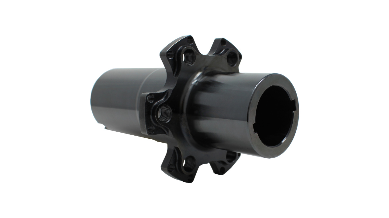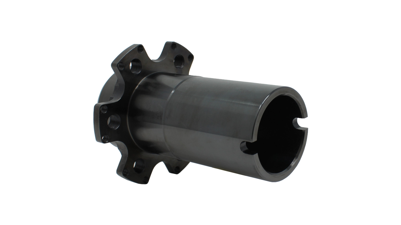 This BBC hub is made from steel and works with a RCD front crank support. Made to fit a standard crankshaft with two 1/4" keyways, it has 3/8-24 threaded holes.