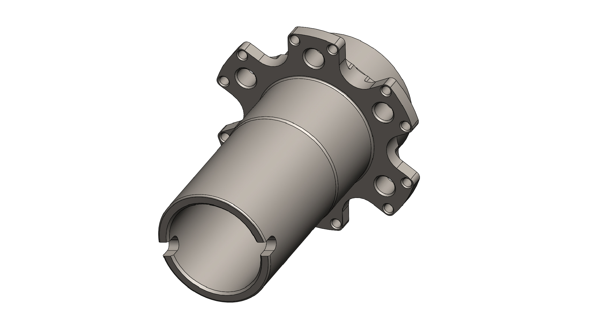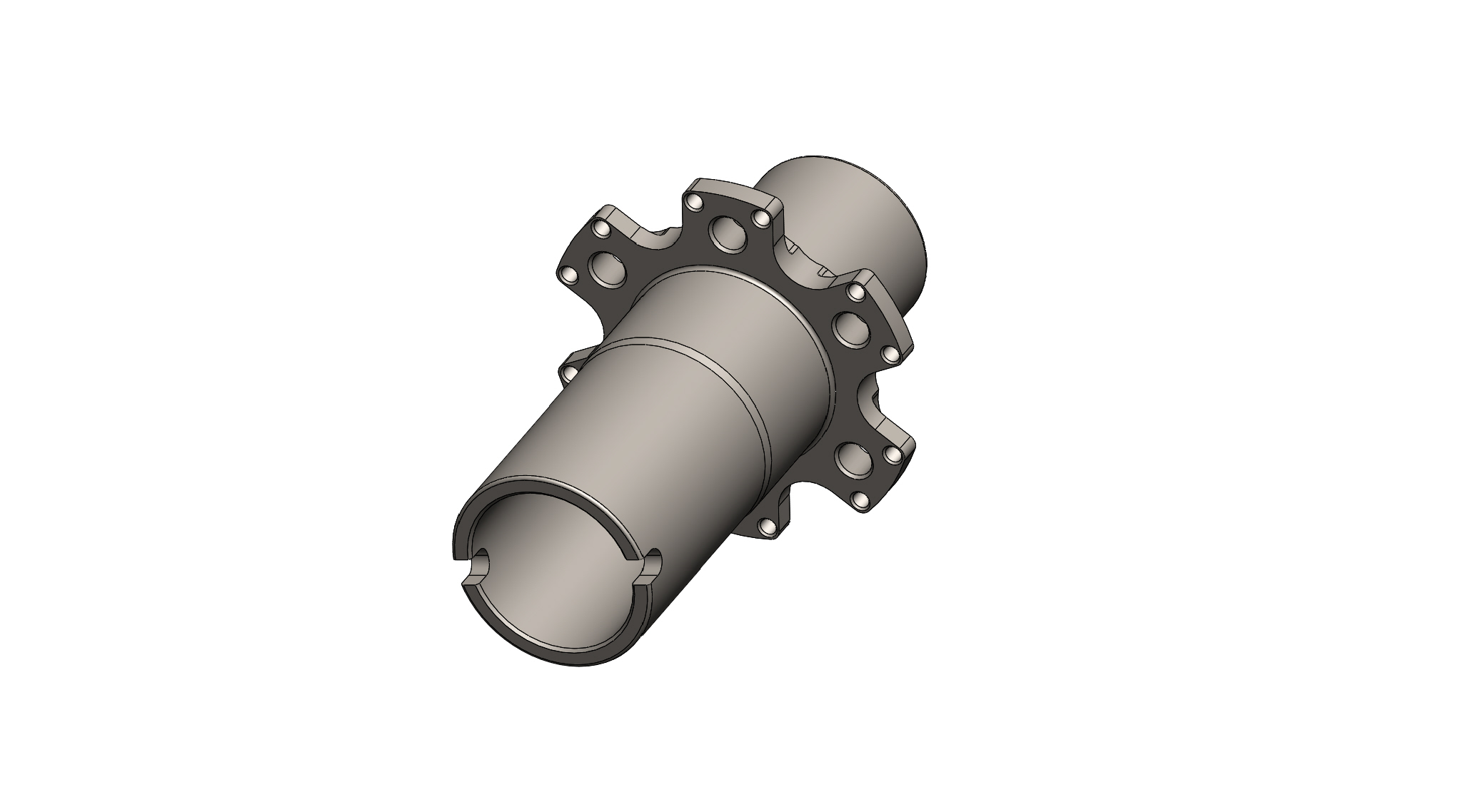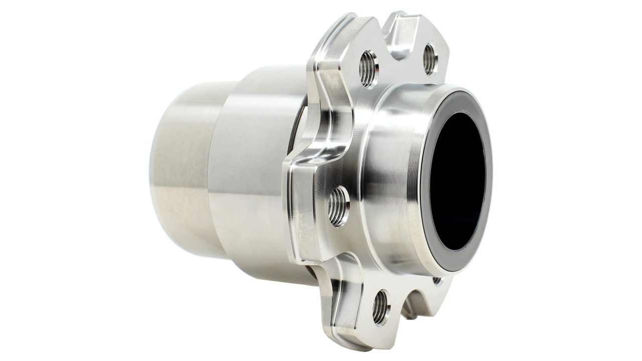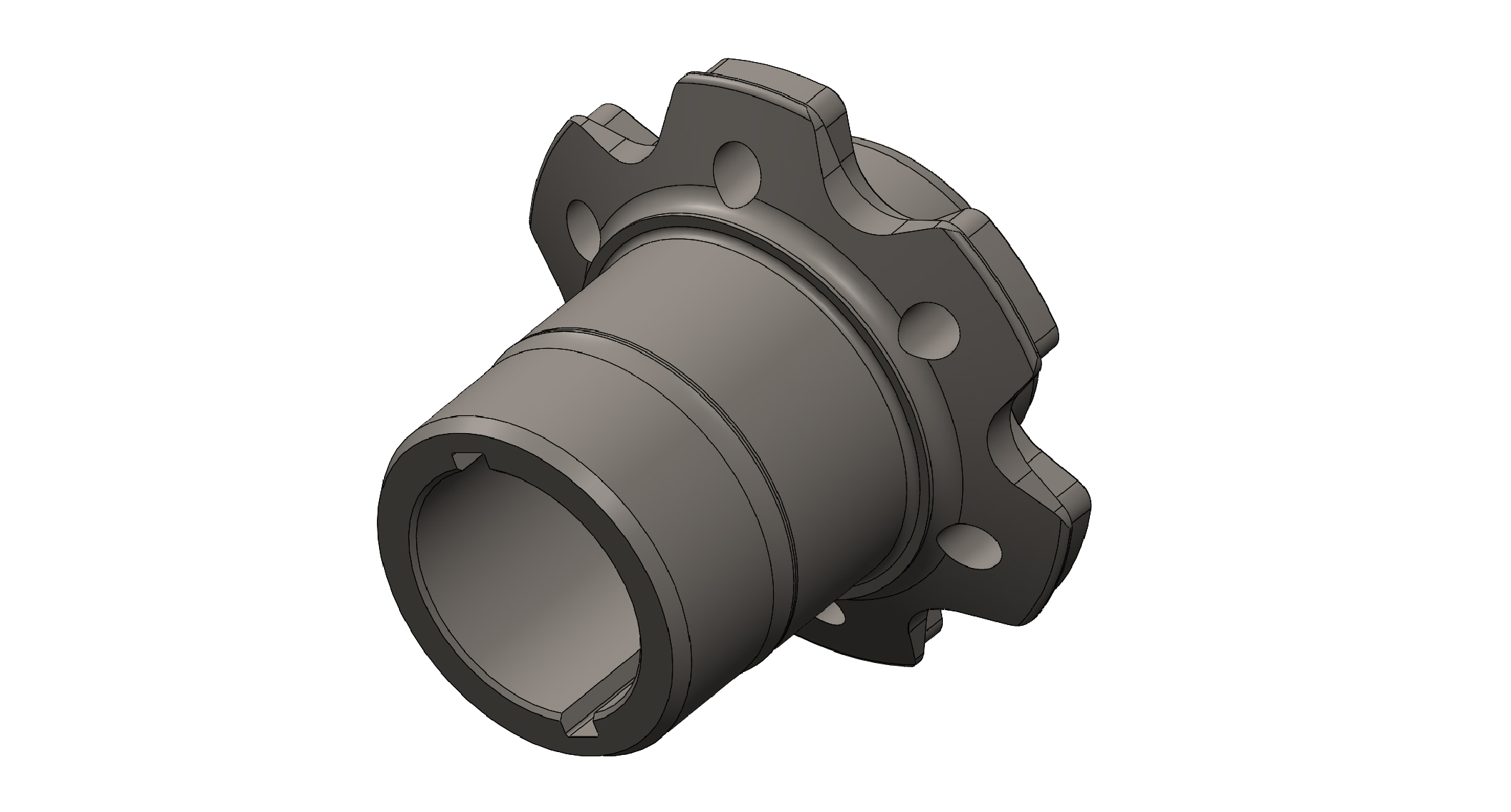 This BBC hub is made from steel and works with a RCD front crank support. Made to fit a standard crankshaft with two 1/4" keyways, it has 3/8-24 threaded holes.