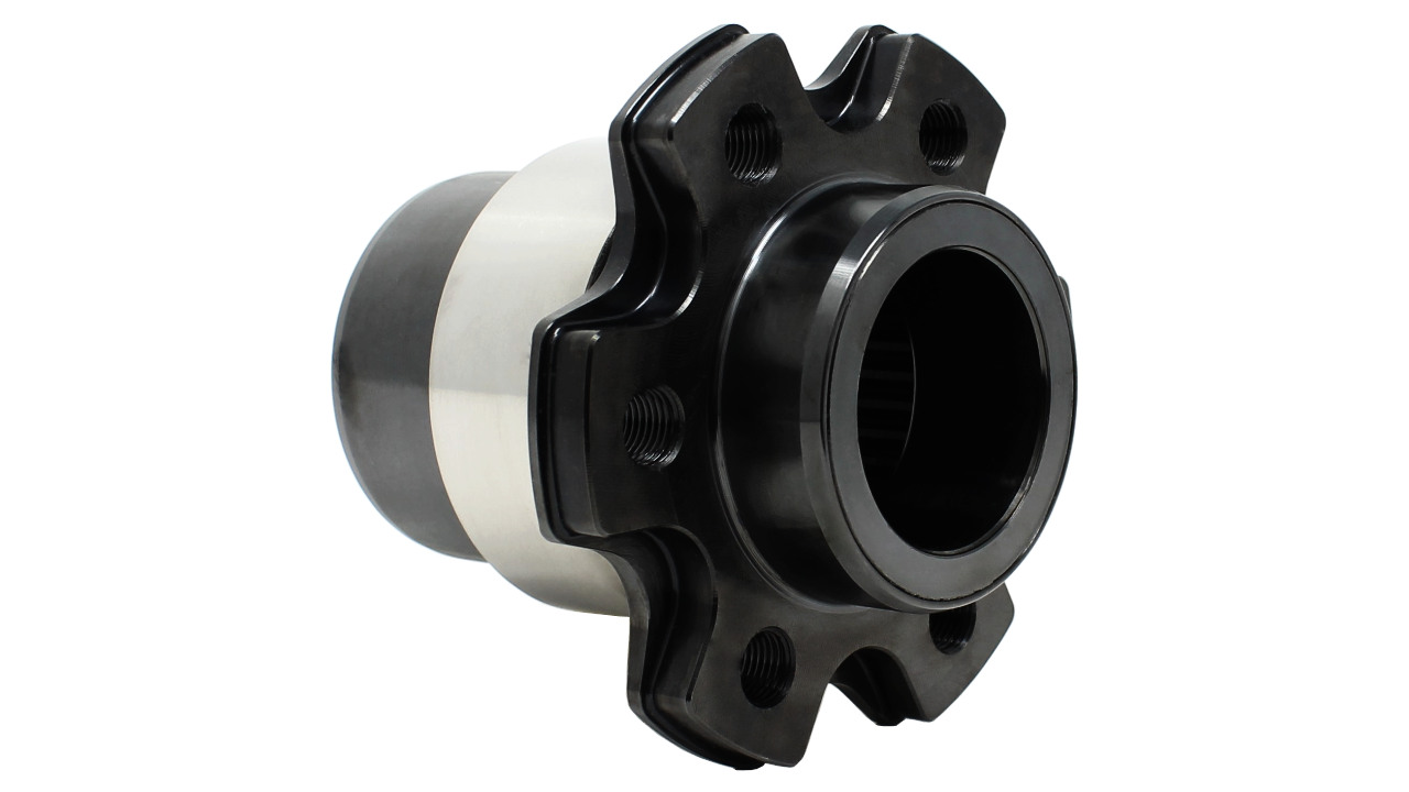 This 426 Chrysler hub is made from titanium and works with a RCD rear crank support. Made to fit a crankshaft with a PSI spline, it has 7/16-20 threaded holes.