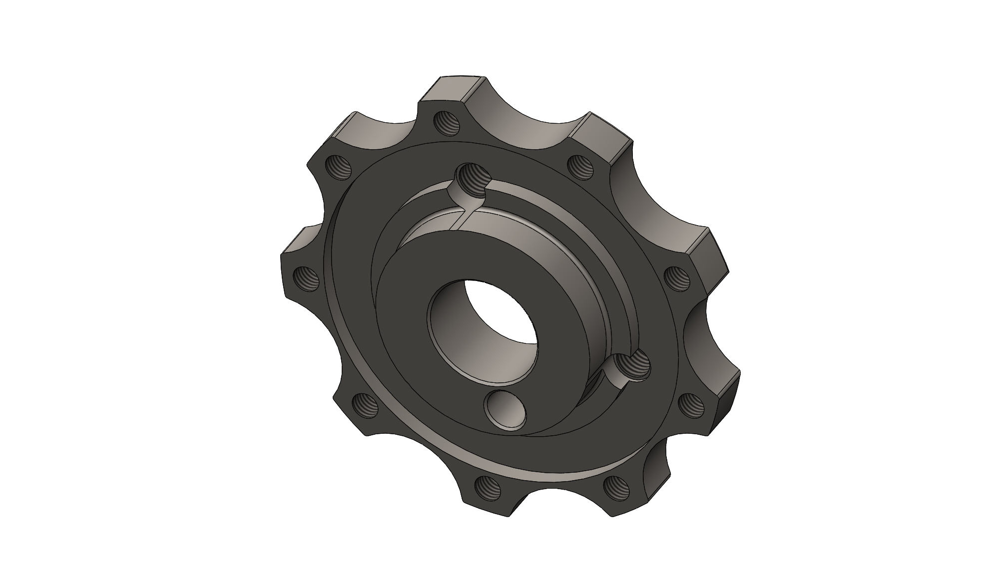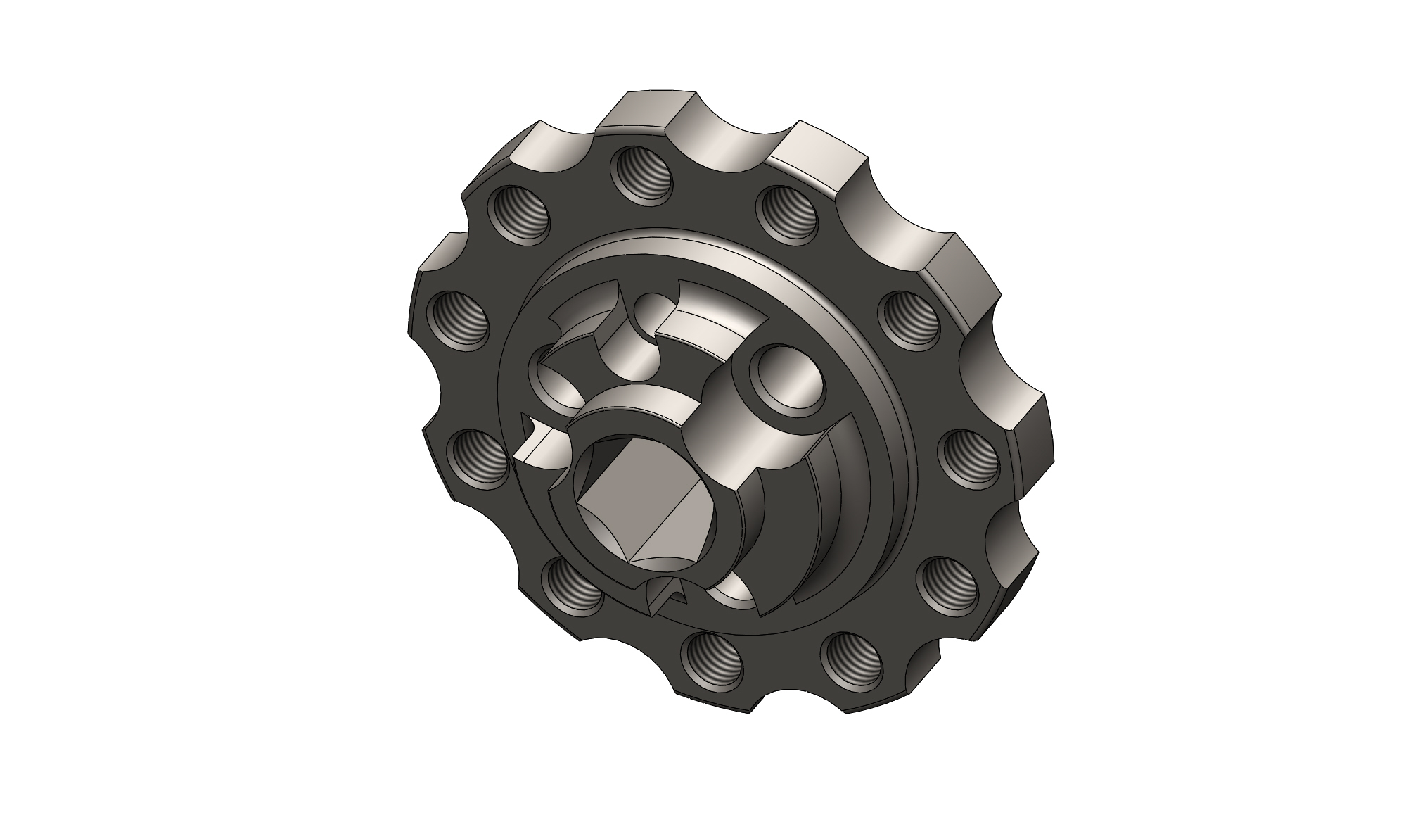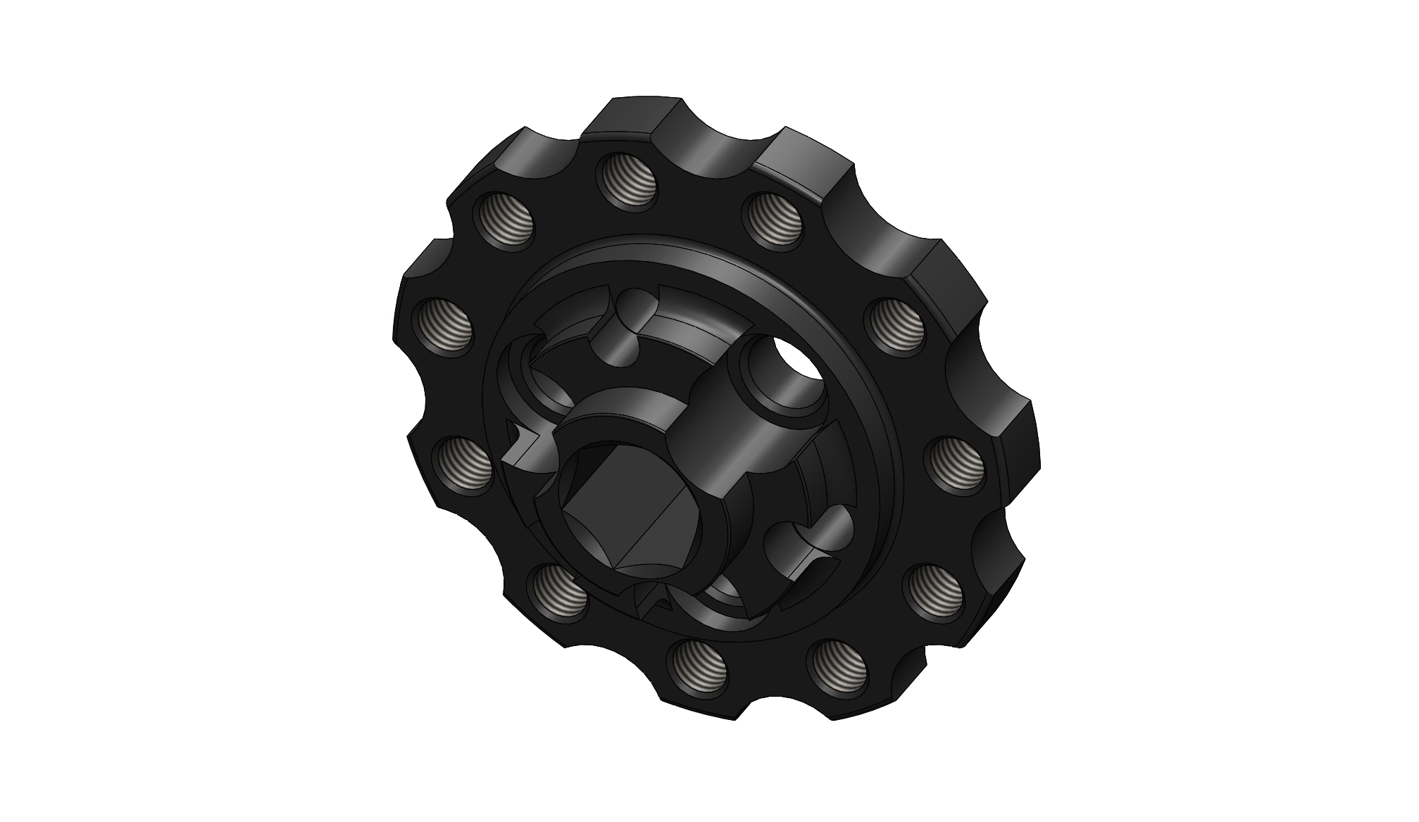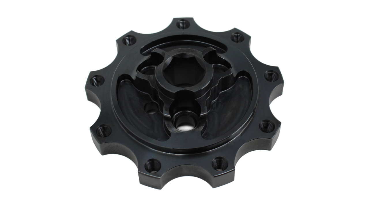 This SBF cam hub does not have a drive hex. A mating drive hub is available in 1/2" (PN: 251026-16) or 3/8" (PN: 251026-17) drive hex.