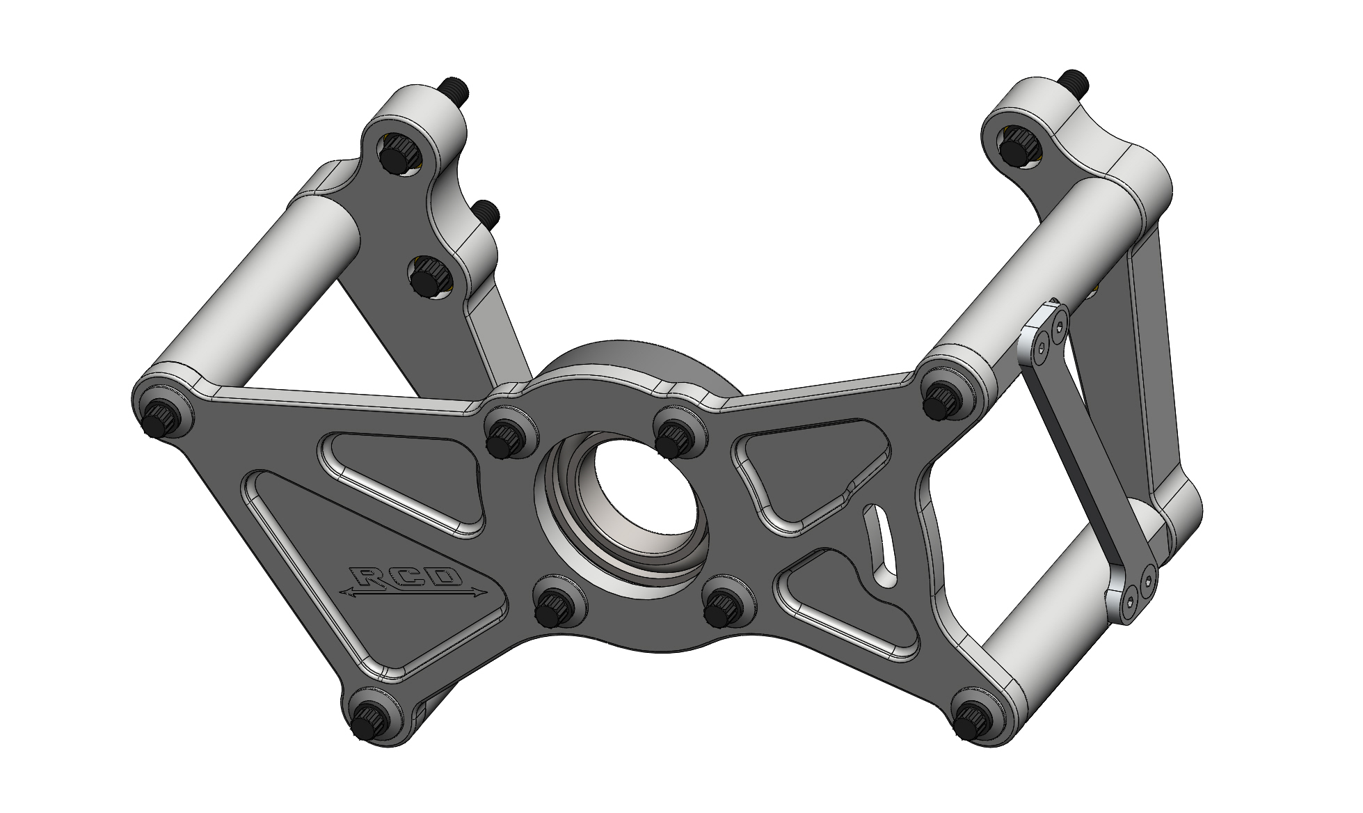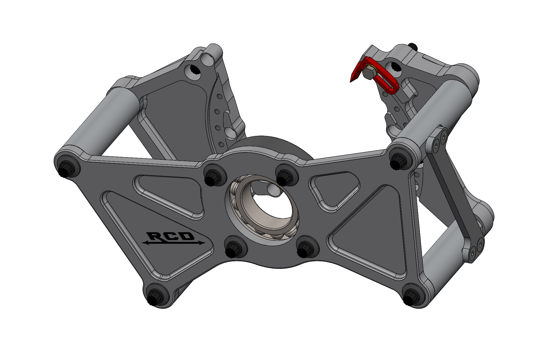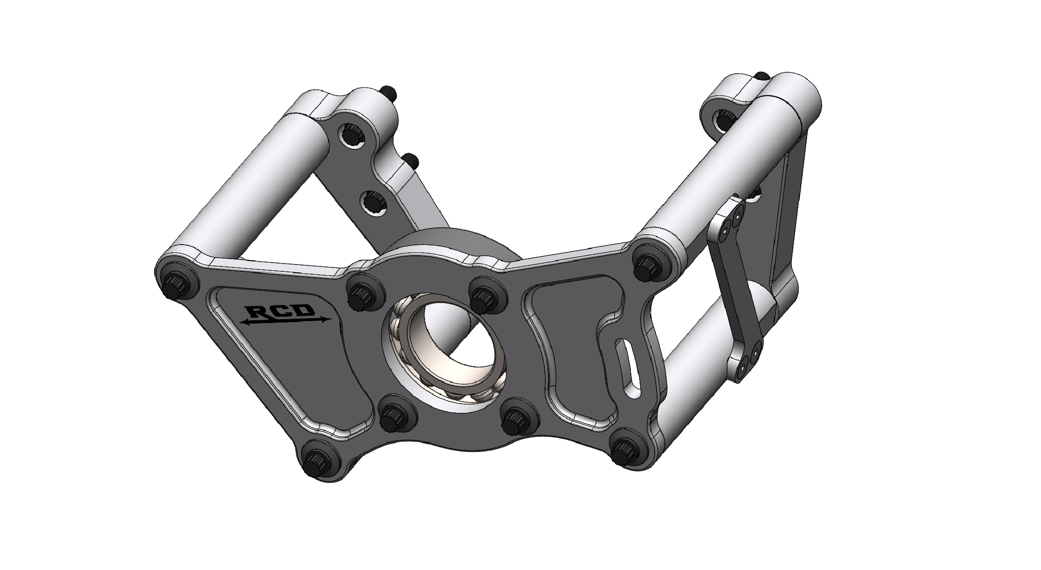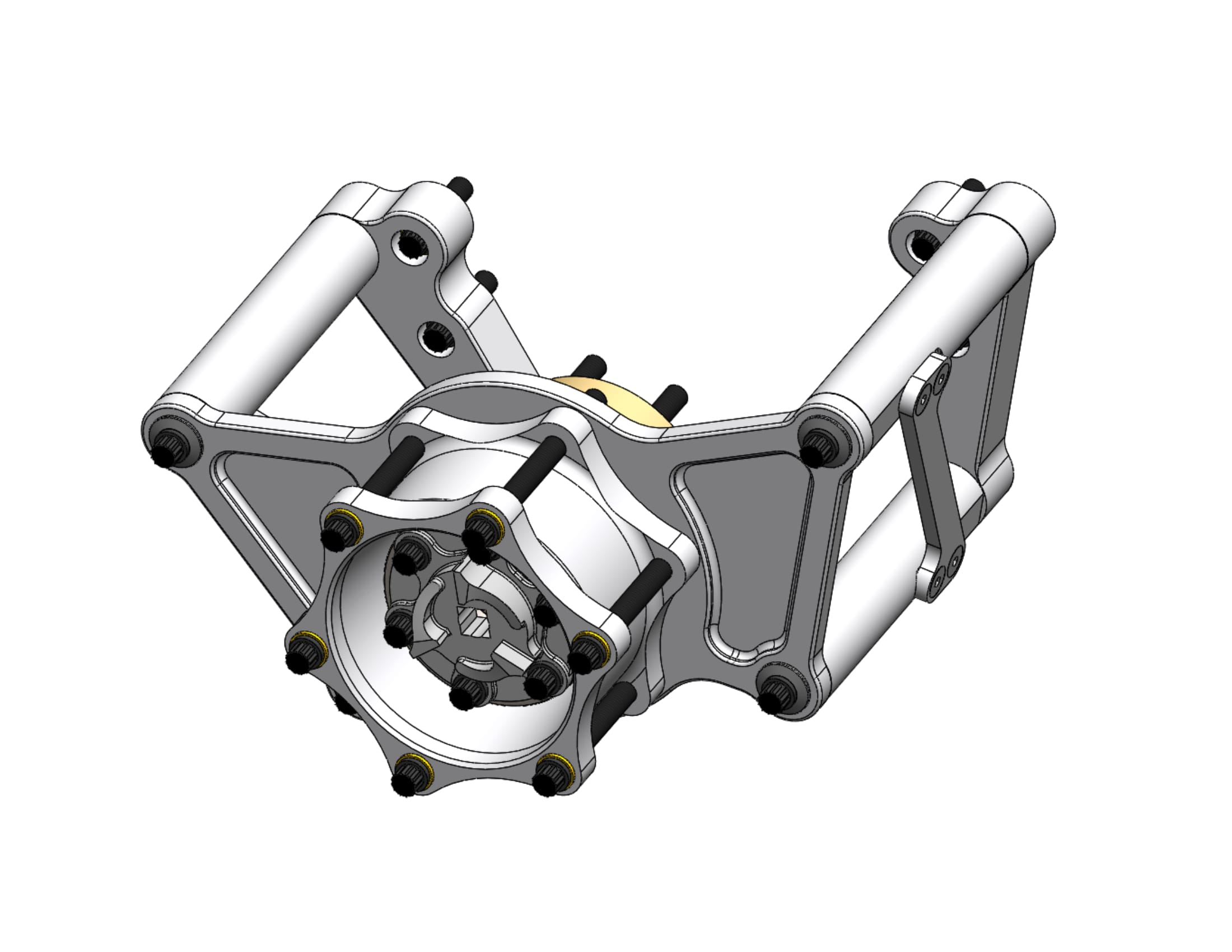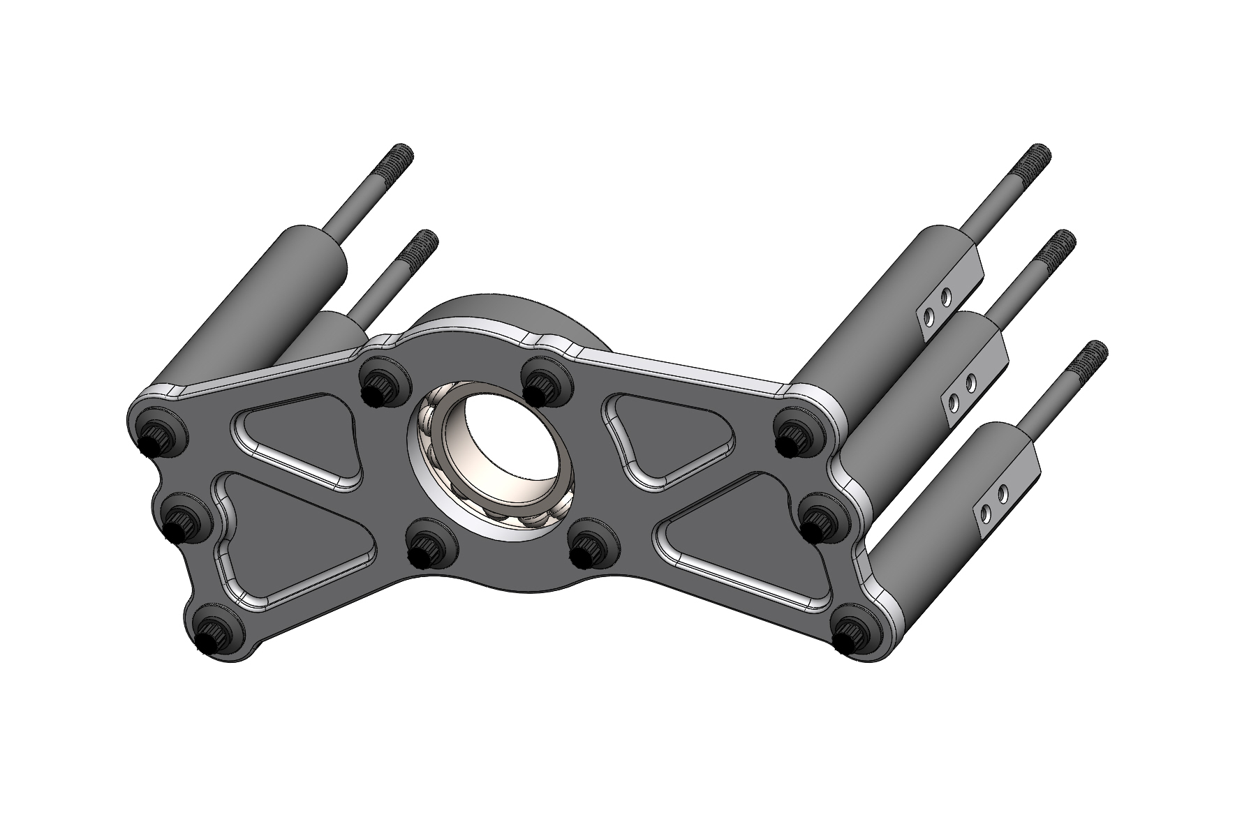 This crank support assembly is for a TFX engine block. The struts on this assembly are setup to run crank trigger pickups.