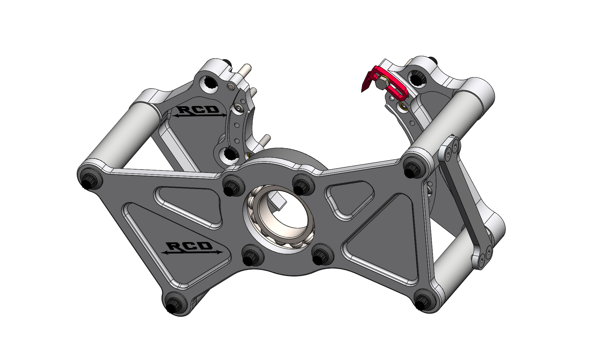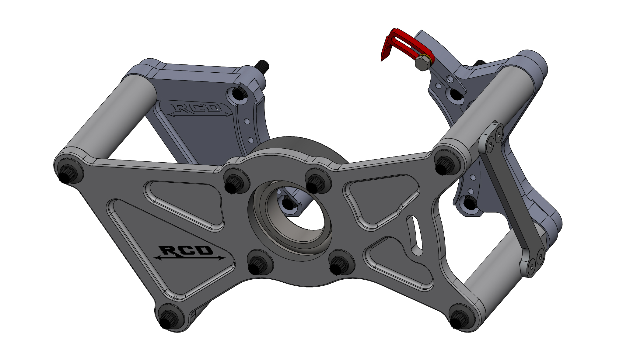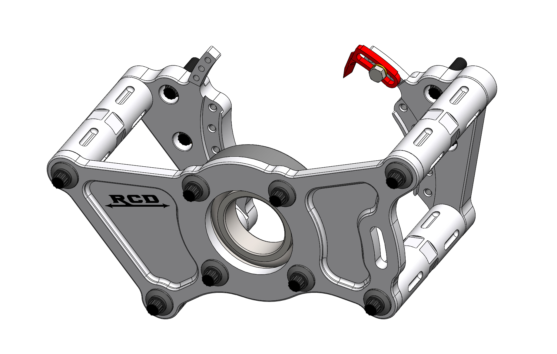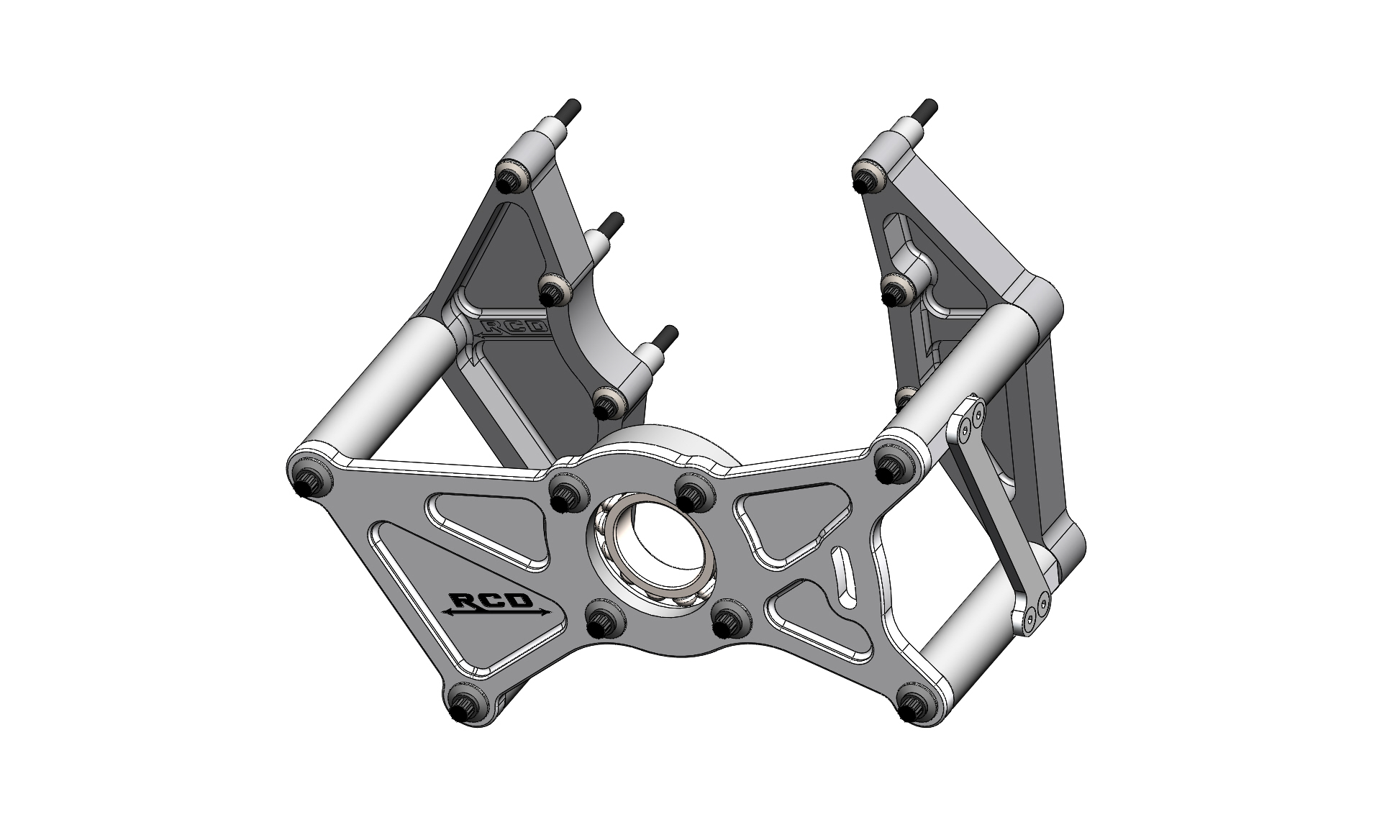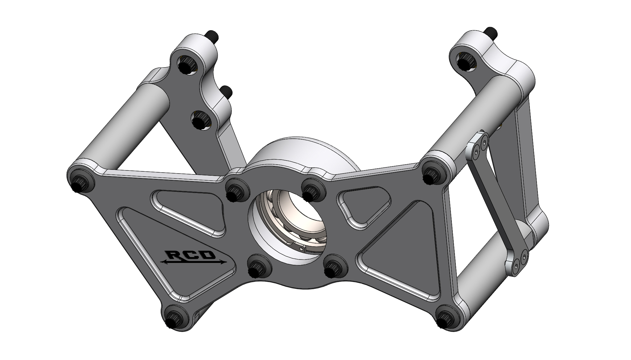 This crank support assembly is for a TFX engine block. The struts on this assembly are setup to run crank trigger pickups.