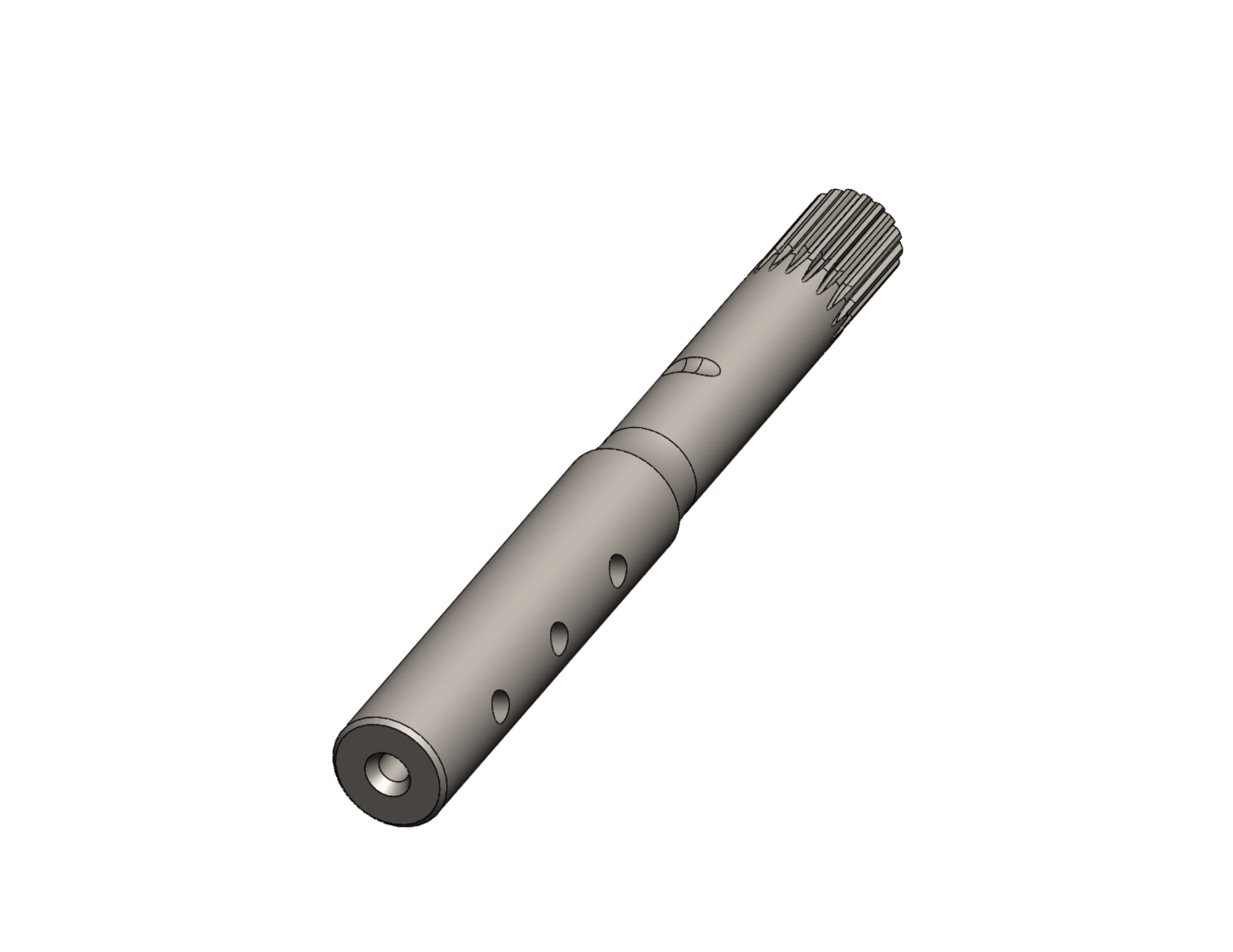 This driveshaft has an external spline that mates to the driven jaw on the Champcar starters, there is also a detent to allow the shaft to be locked into the jaw with a 5/16-24 bolt. They are machined from 4340 steel and heat treated, the drive end is left blank to customize to your application.