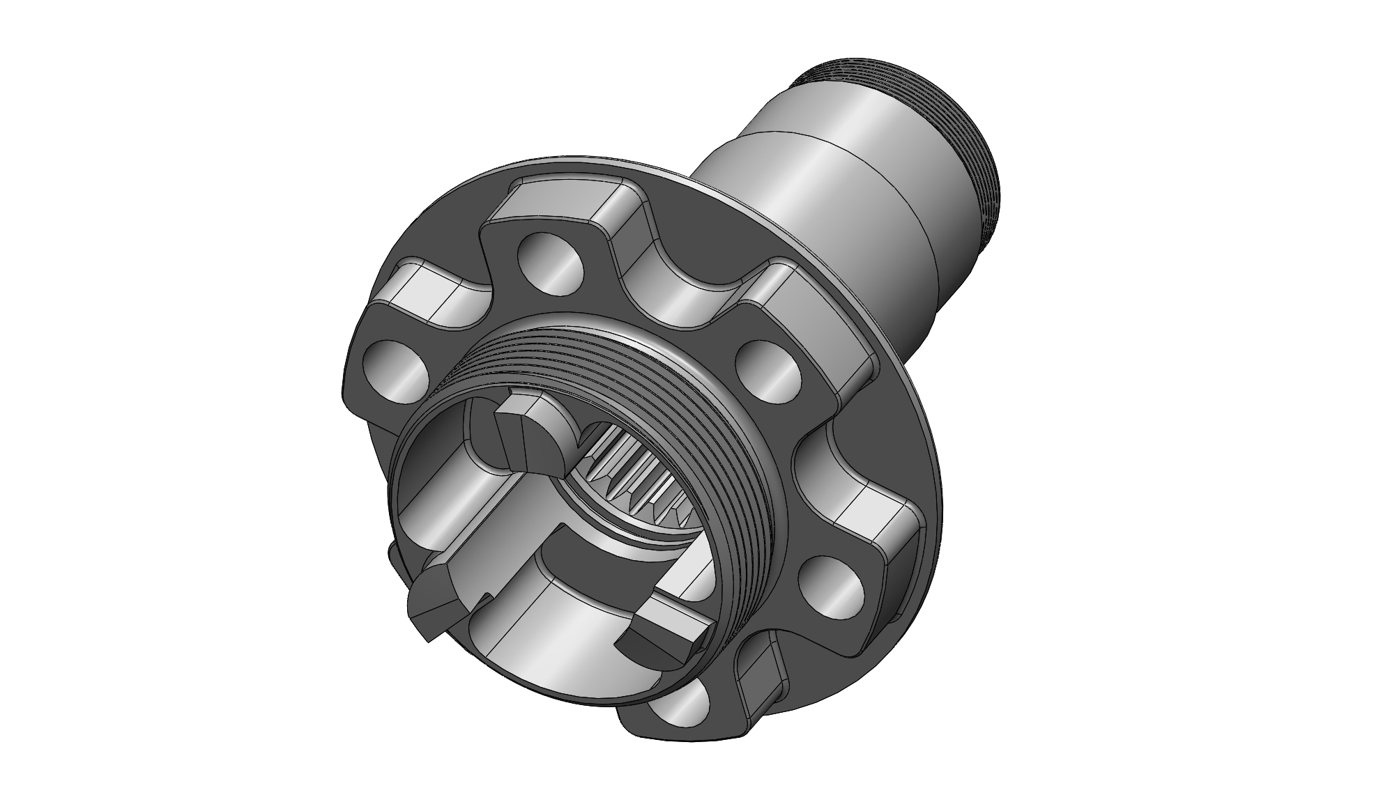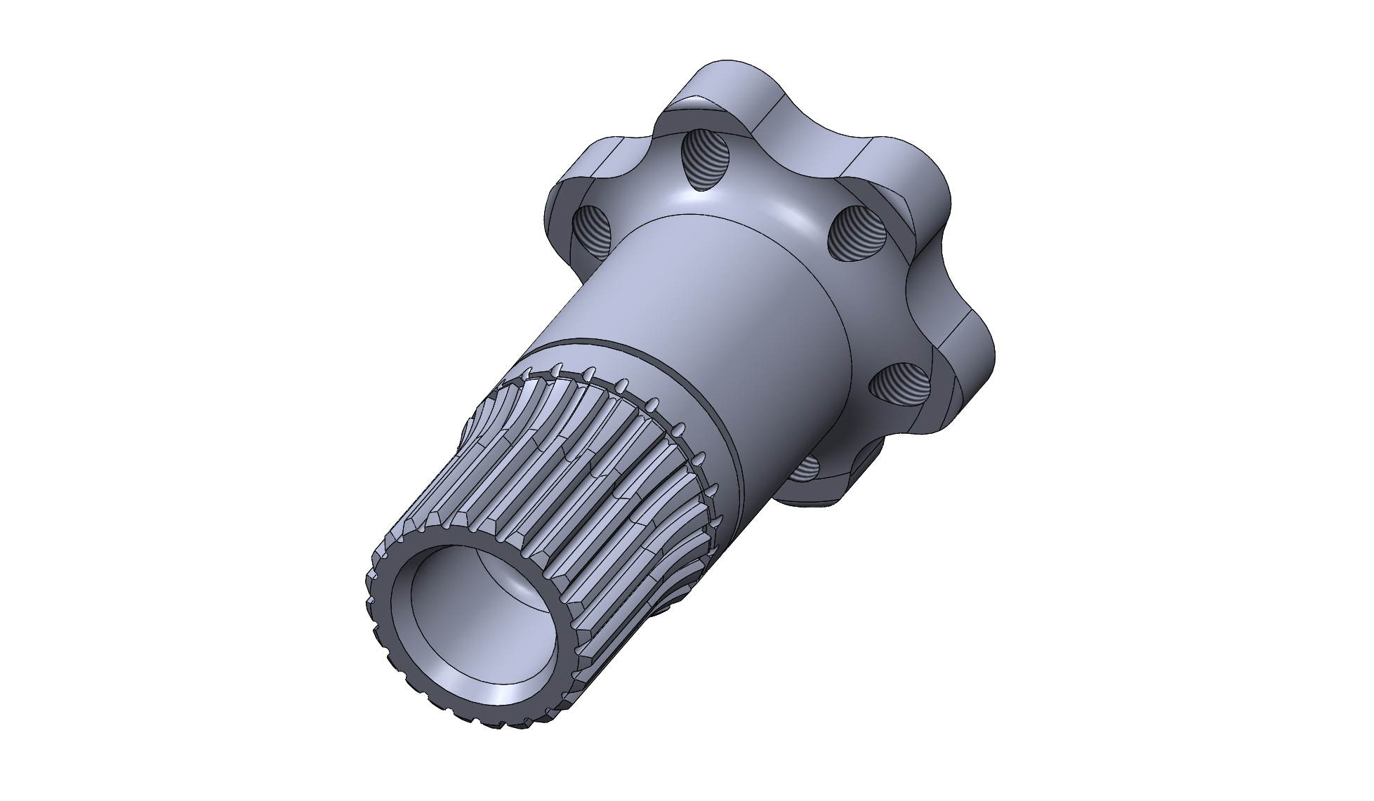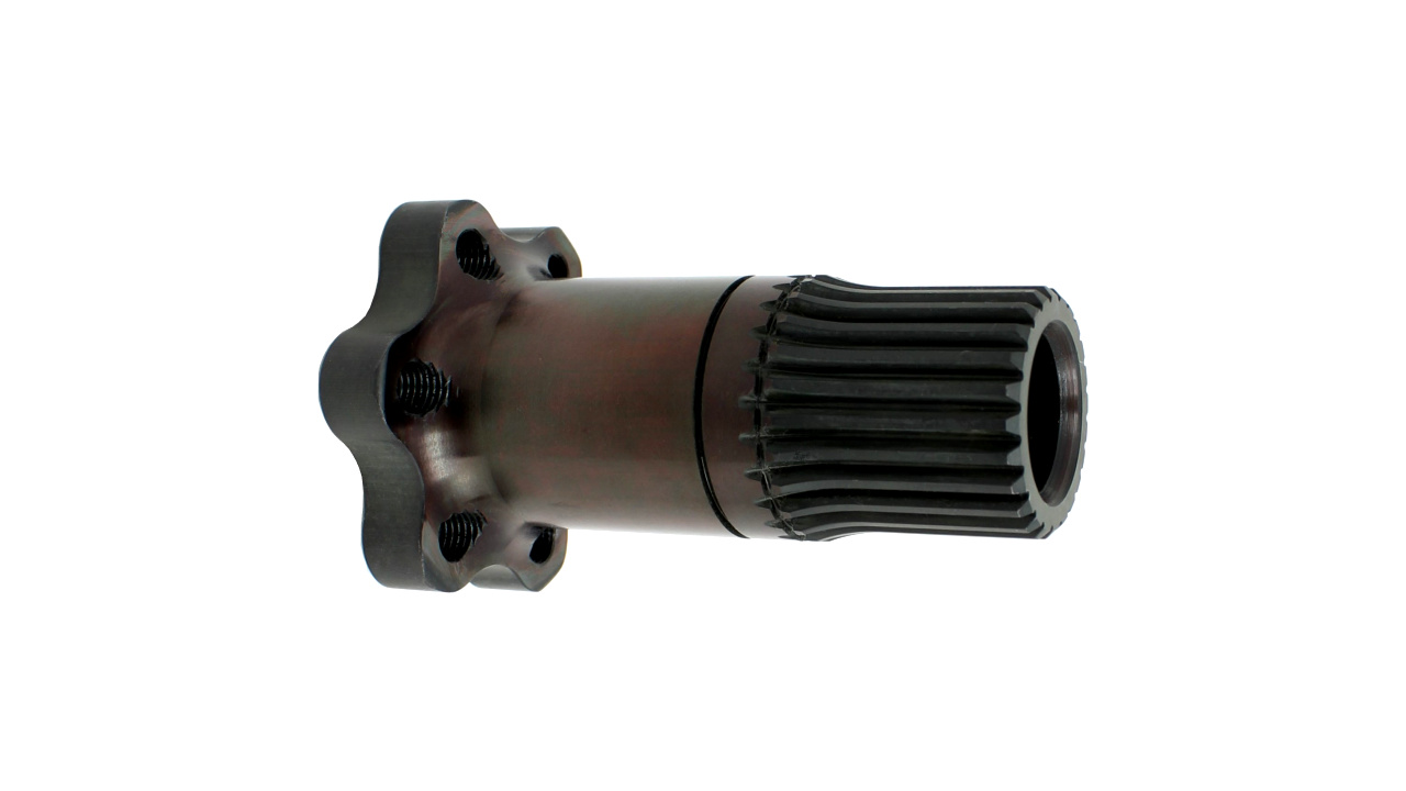 This front drive hub is for use with a spline cut top blower pulley and is machined from steel.