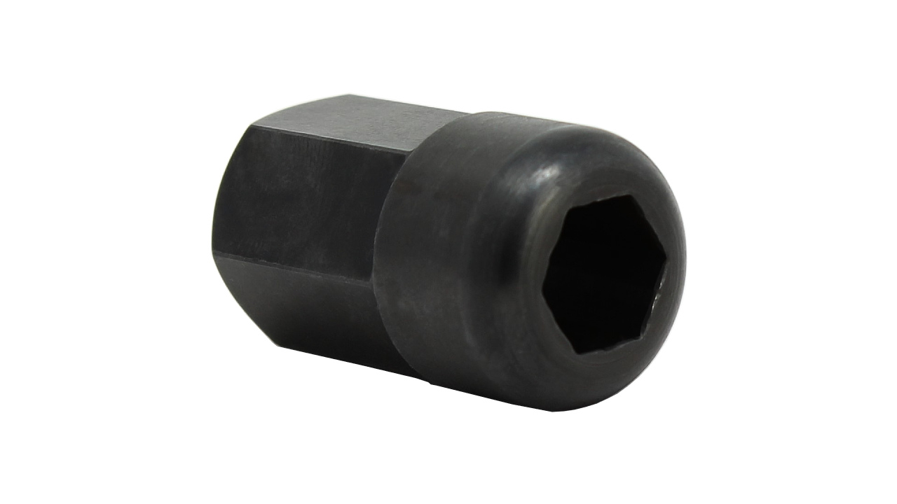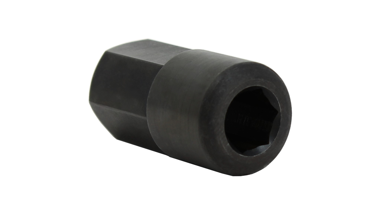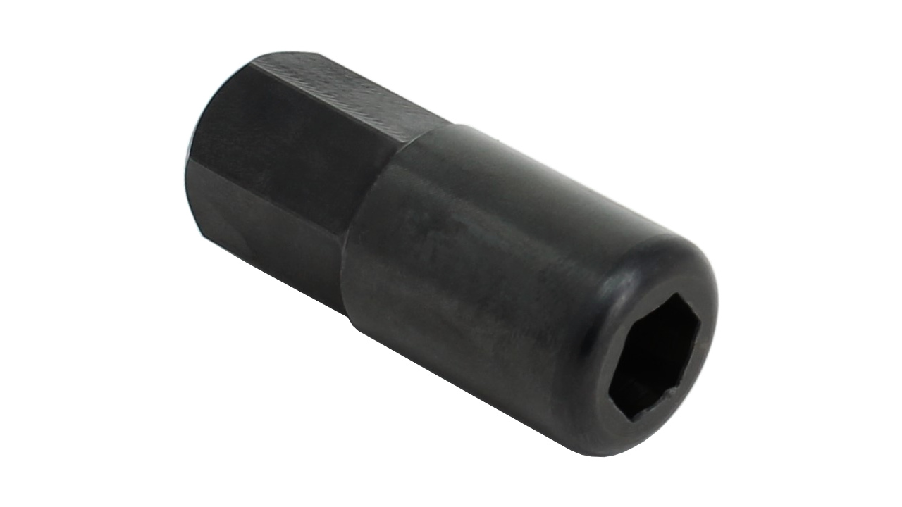 This hex adaptor adapts 5/8” male to 3/8” female with a 1.0” length.