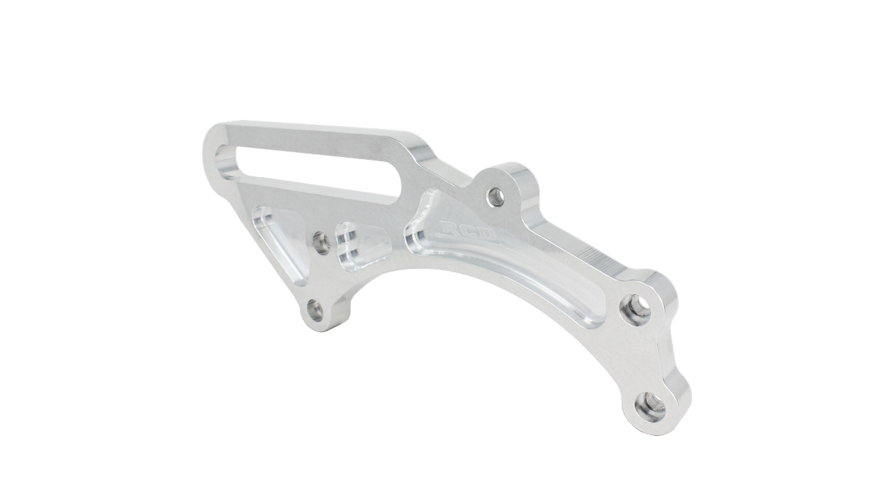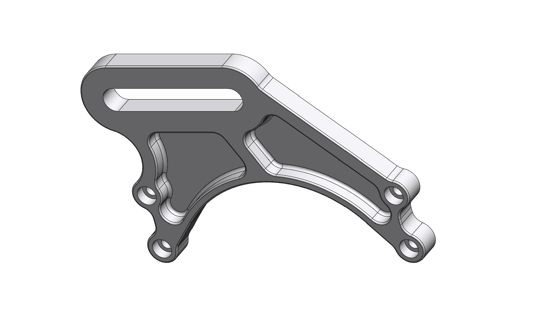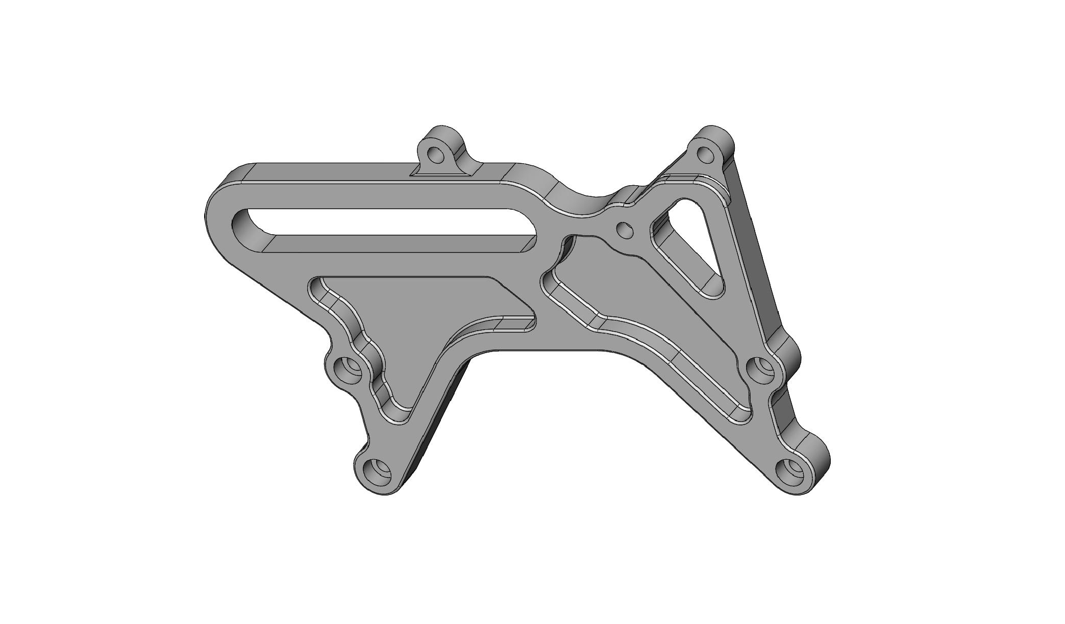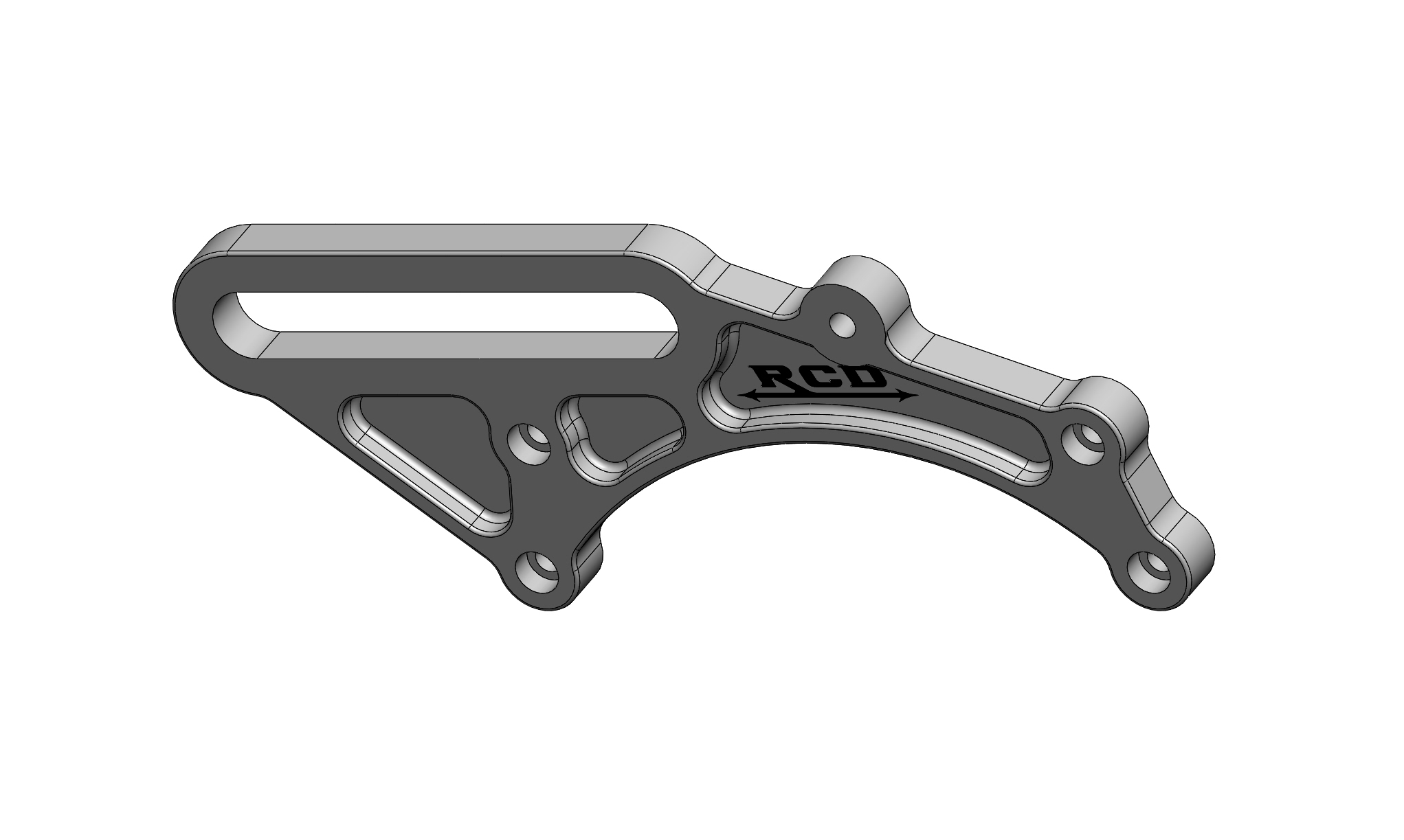 This idler plate fits a 426 BAE or TFX engine block it has an angled slot (1.01" x 8.32") and holes for an outboard support. This plate also has a 3/8-24 tapped hole in the end of the slot so that a jack screw can be added to assist in tensioning the idler pulley.