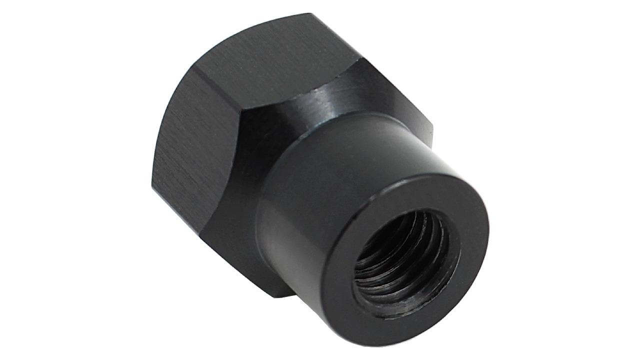 These black anodized aluminum jam nuts keep the jack screw from backing out.