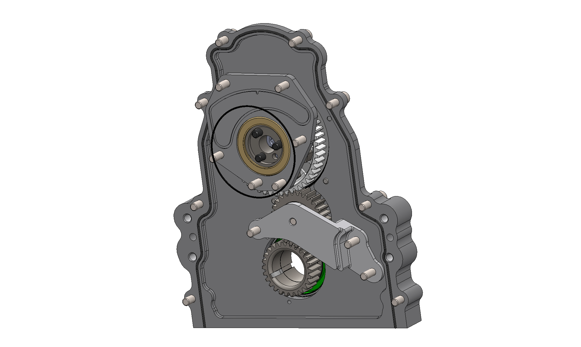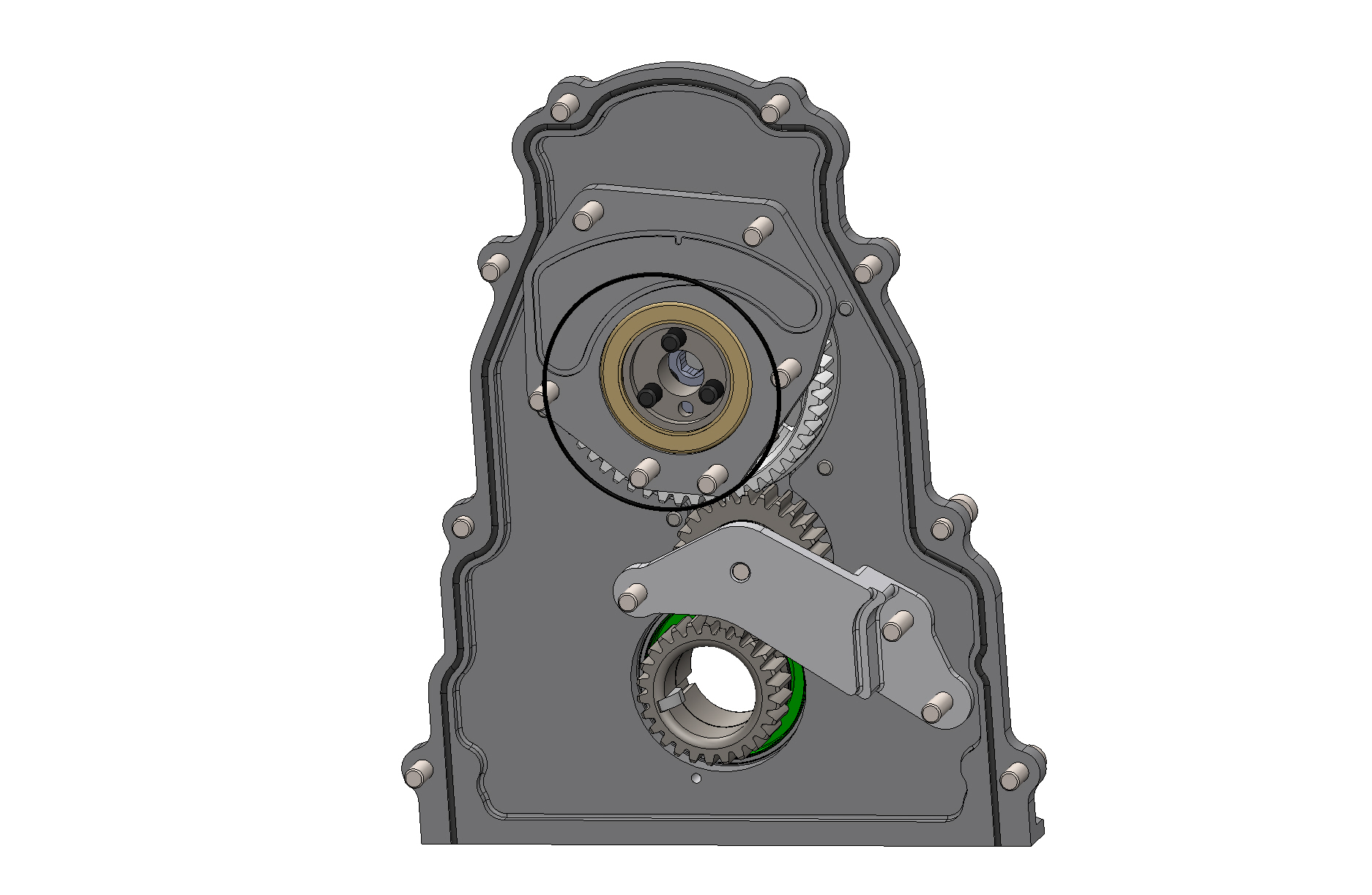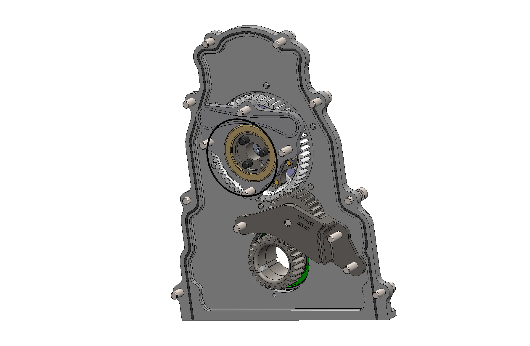 This standard cam LS gear drive has provisions to mount a RCD front crank support.