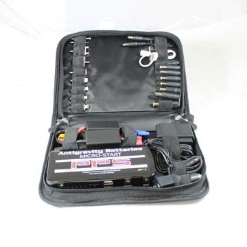 The worlds lightest and smallest jump starter/portable power supply, only 6" x 2.875" x 1" and 14 oz. It can start your Car, Motorcycle, Boat, ATV, Snowmobile even your V8 truck. It can charge and power most of your electronic devices as well; laptops (not compatible with Apple 16v), cell phones, iPads, Kindles, cameras and more. There are three on-board power ports; a 19v for laptops, a 12v and a USB 5v. A high-power LED flashlight has 2 built in flash patterns including an S.O.S beacon. It has a lighted battery capacity indicator and built in over-charge/over-discharge protections for long battery life, as well as automatic power off when not in use. Comes in a convenient storage case with several adaptors.