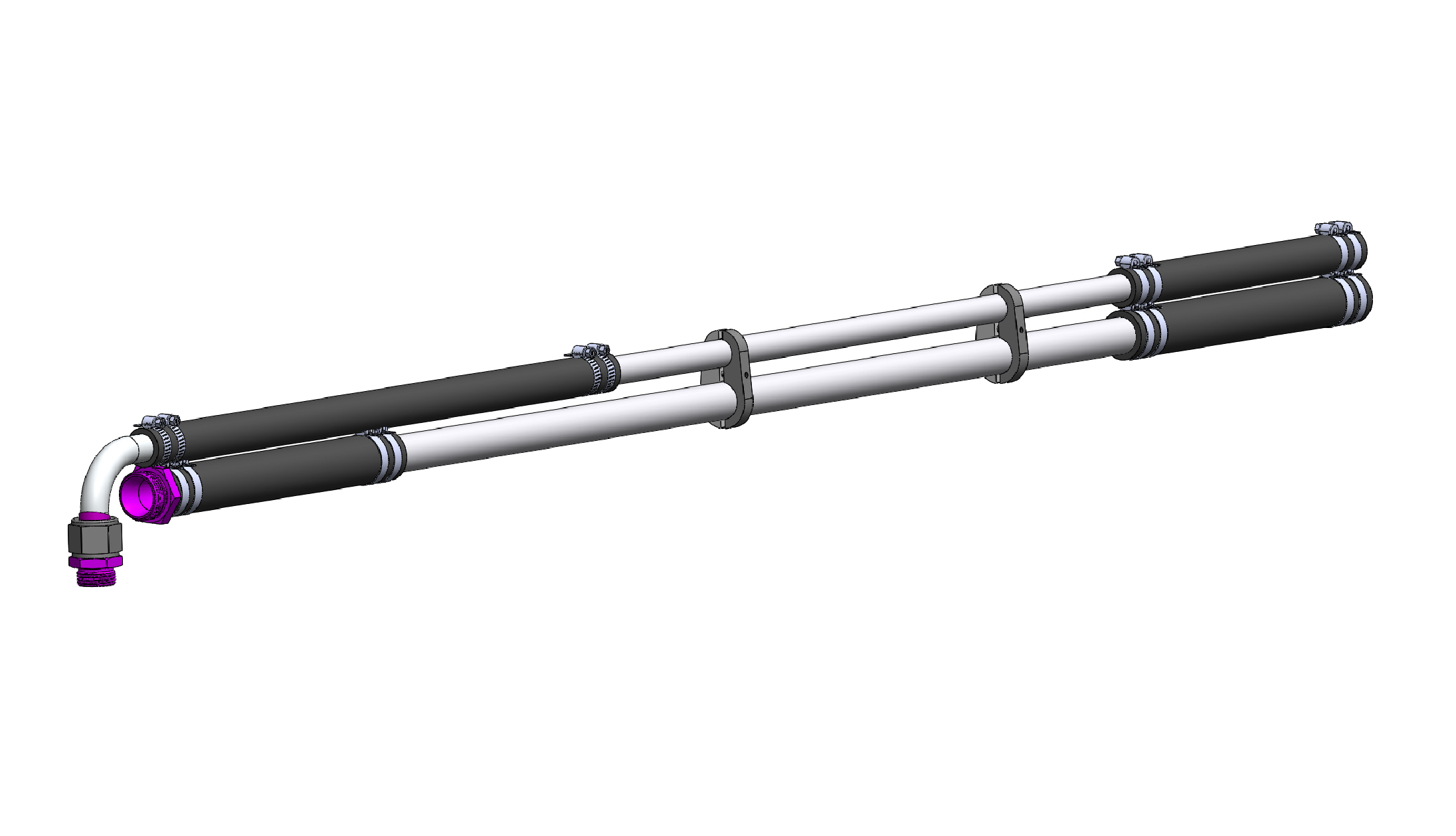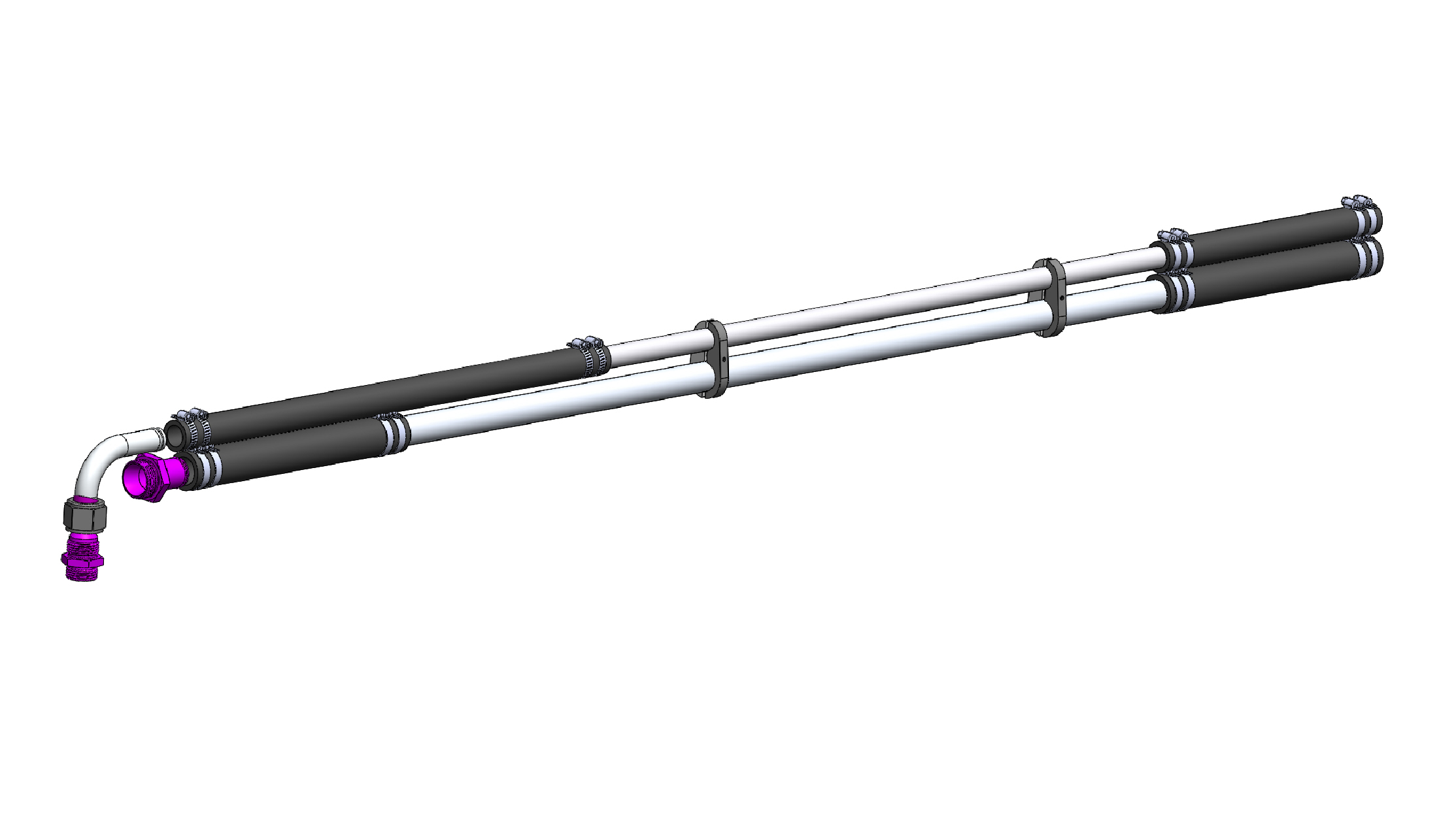 These kits supply everything you need to plumb your oil pump to your oil tank along the frame rails of your Funny Car. Available for Nitro or Alcohol cars, these kits include two AN tank fittings, stainless steel feed and return tubes, two 1” x 10” reinforced hose assemblies with clamps, one 3/4" x 10” reinforced hose assembly with clamps, one 3/4" x 20” reinforced hose assembly with clamps, one 3/4" x 90 degree stainless steel tube assembly with “B” nuts and sleeves and two billet tube clamps. All reinforced hose and stainless steel feed and return lines can be cut to order.