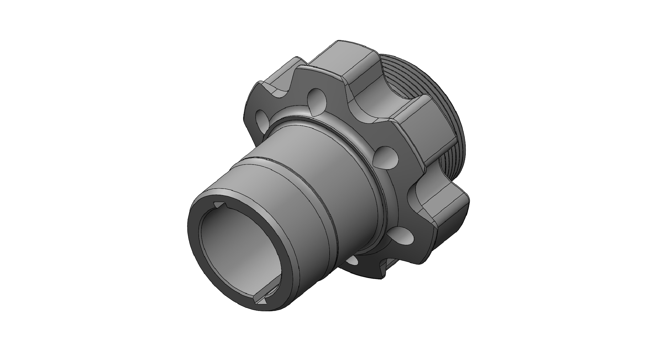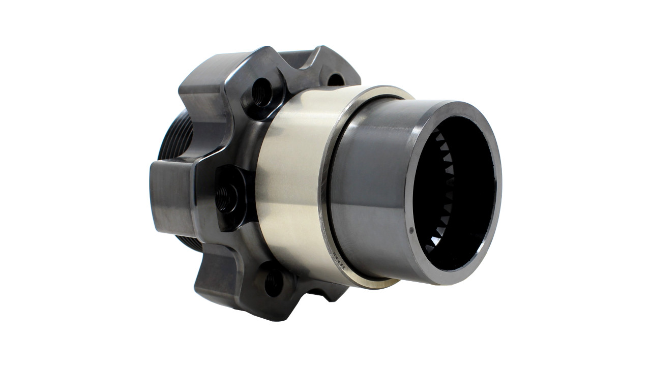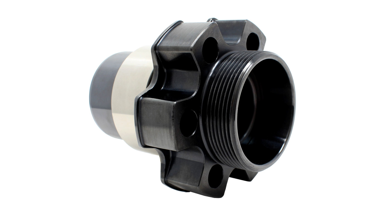 This threaded hub is made from steel, works with a RCD rear crank support and is made to fit a crankshaft with a RCD spline.