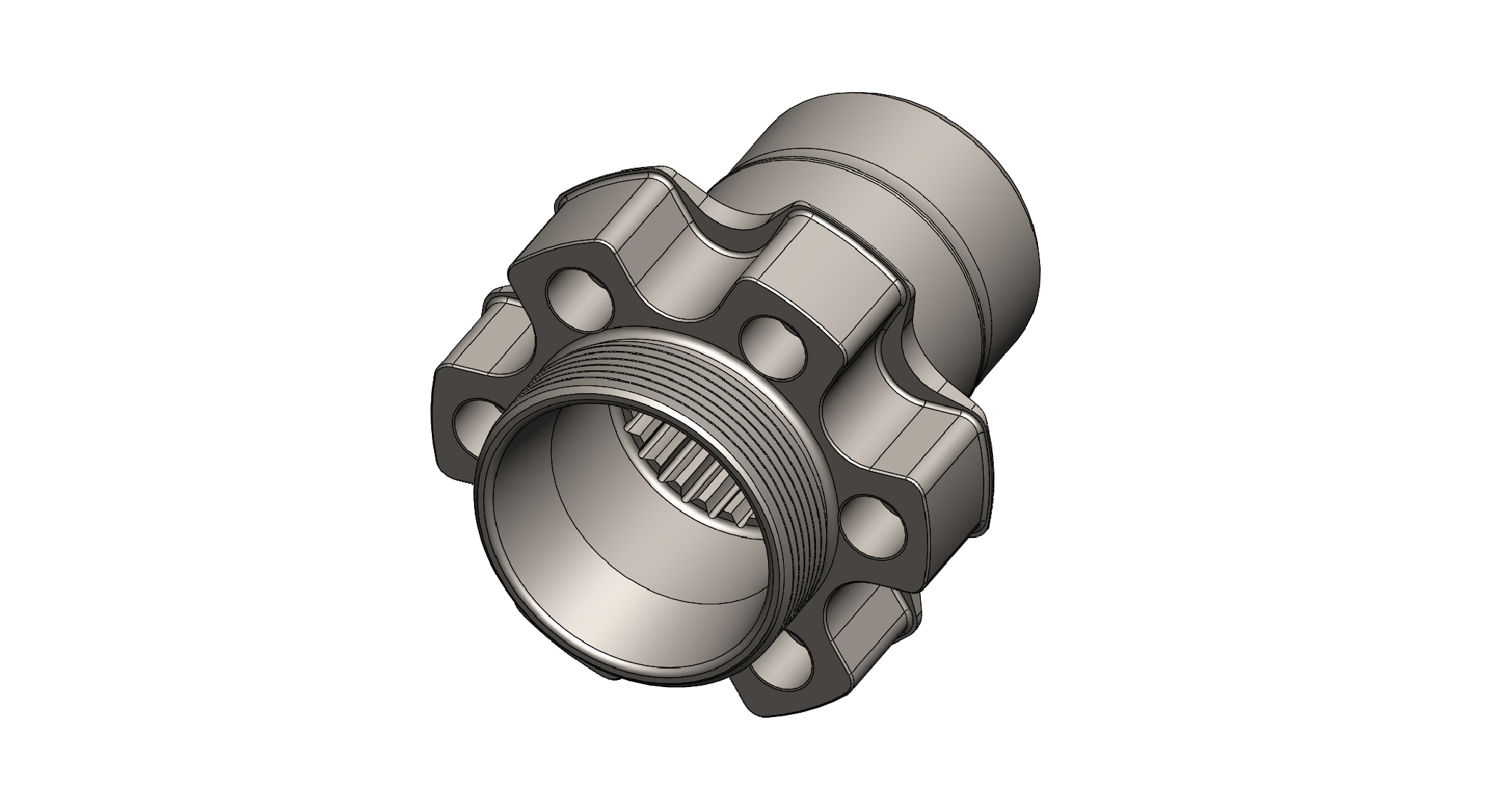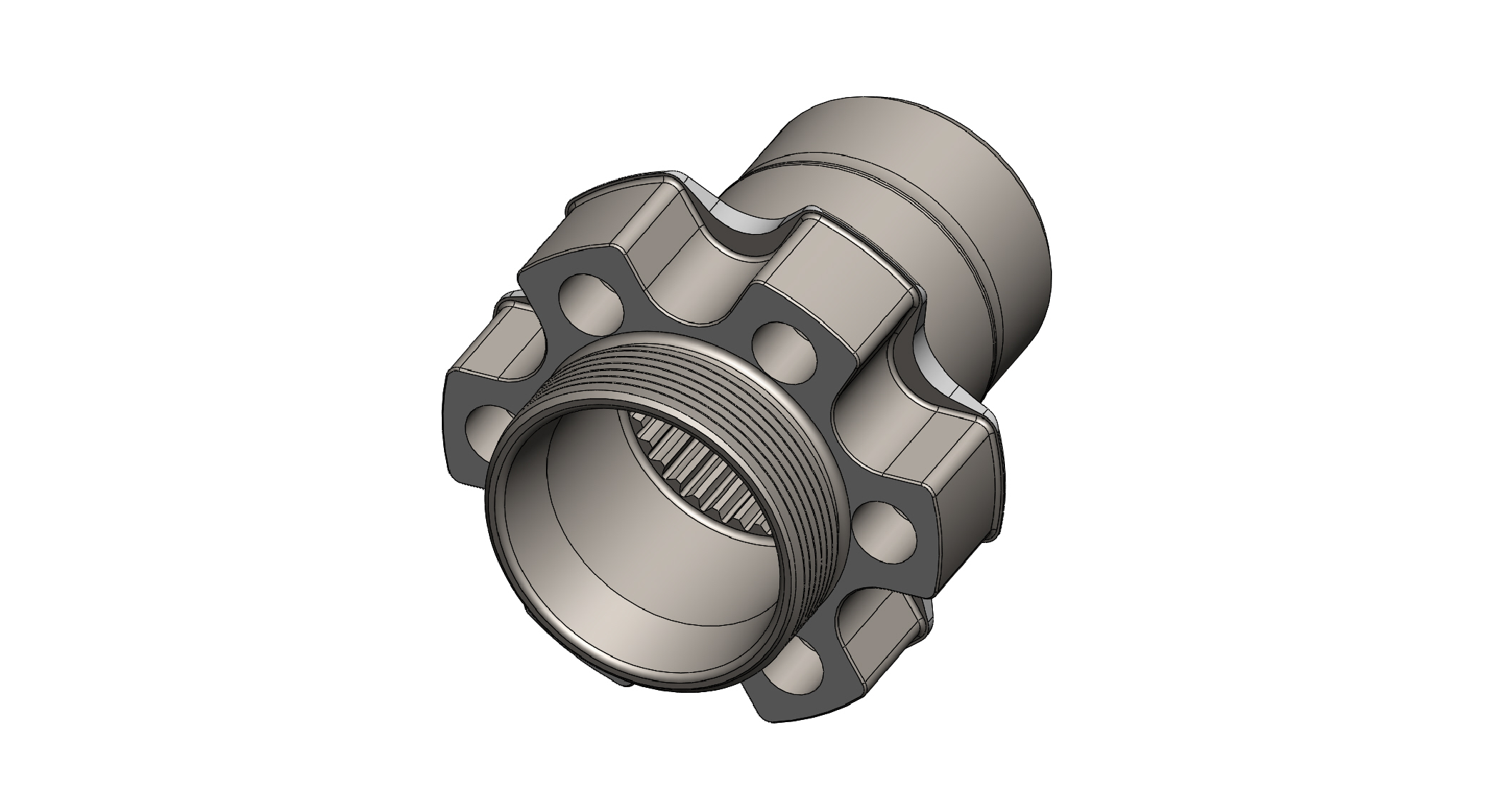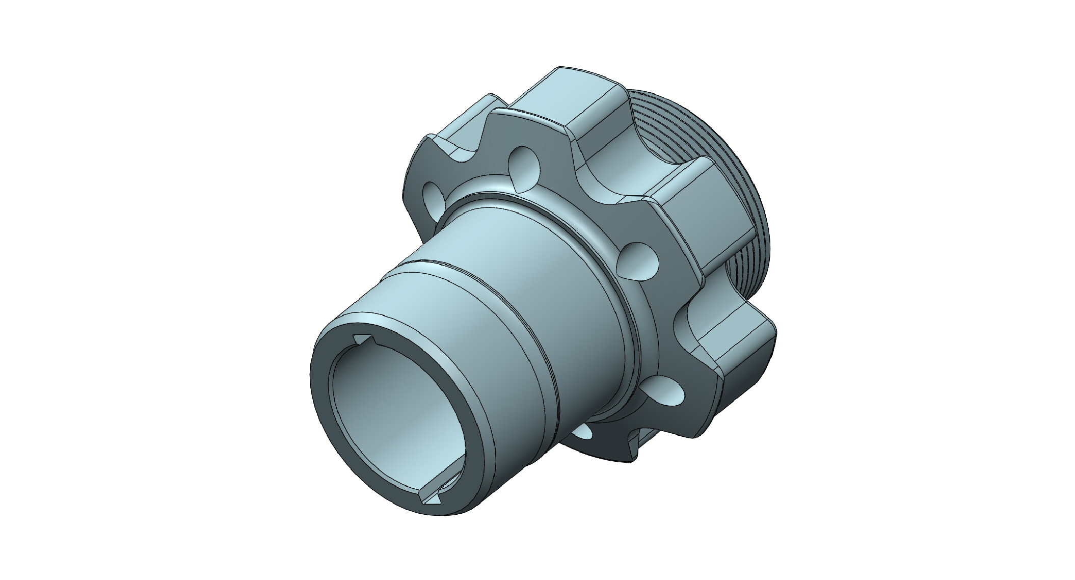 This threaded hub is made from steel, works with a RCD rear crank support and is made to fit a crankshaft with a RCD spline.
