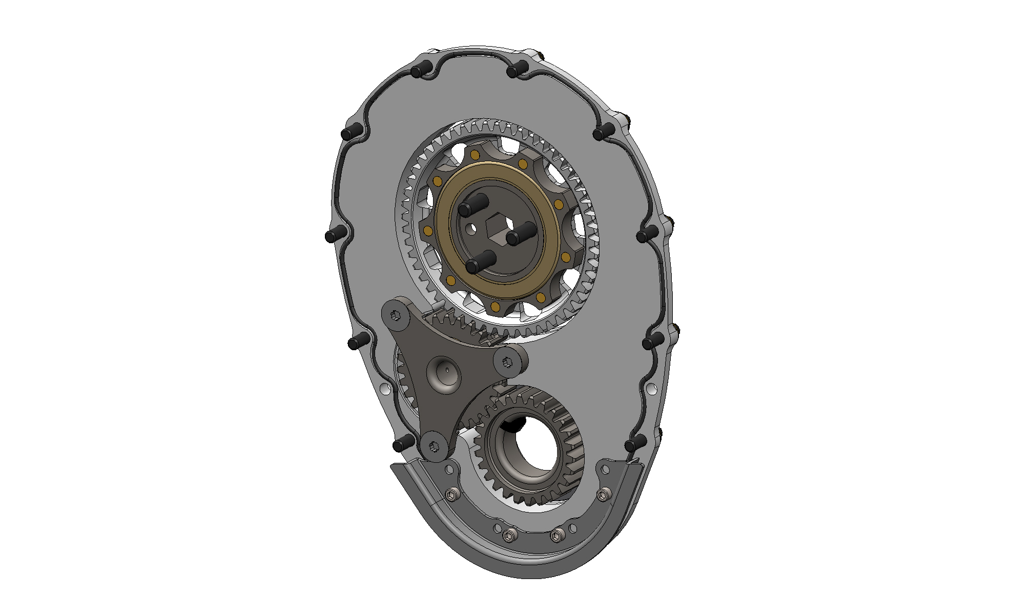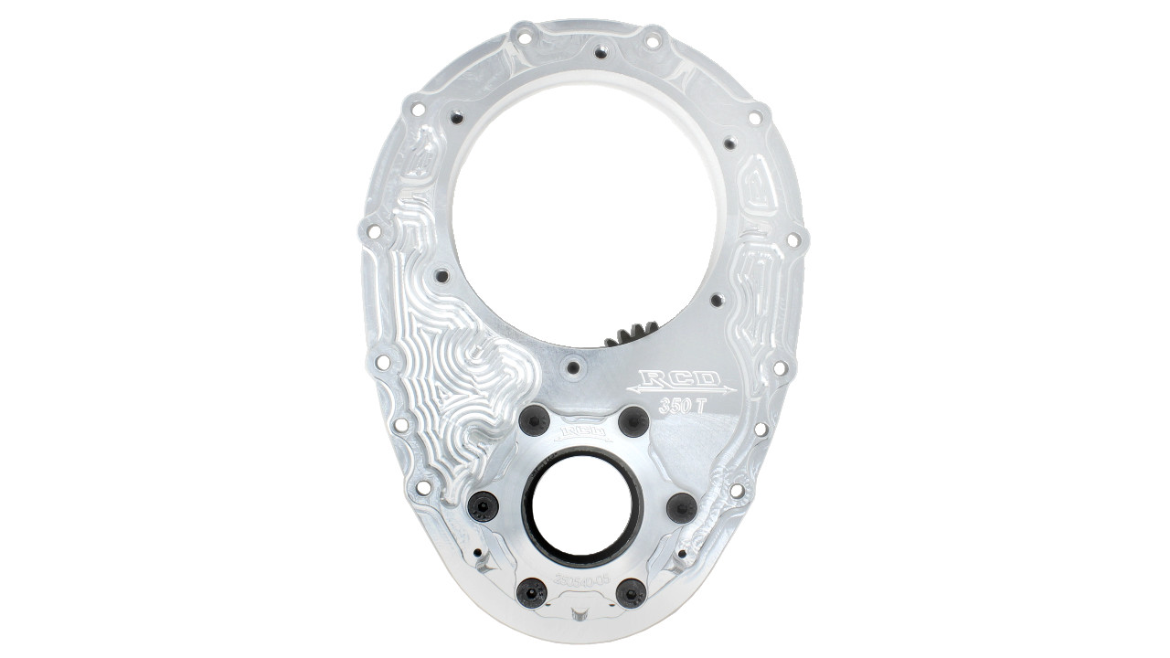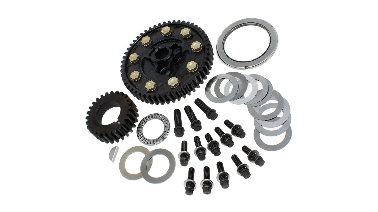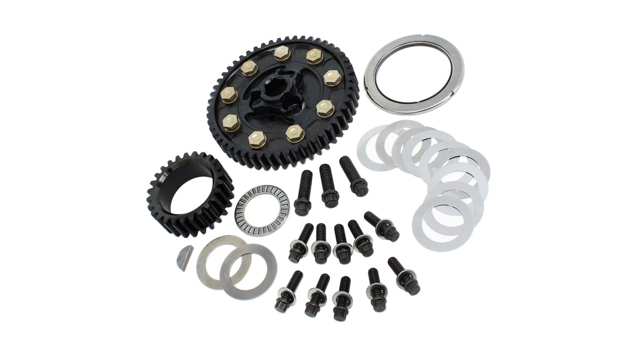 This standard cam SBC gear drive has a 1/2" drive hex and is configured for a crankshaft with a BBC snout.