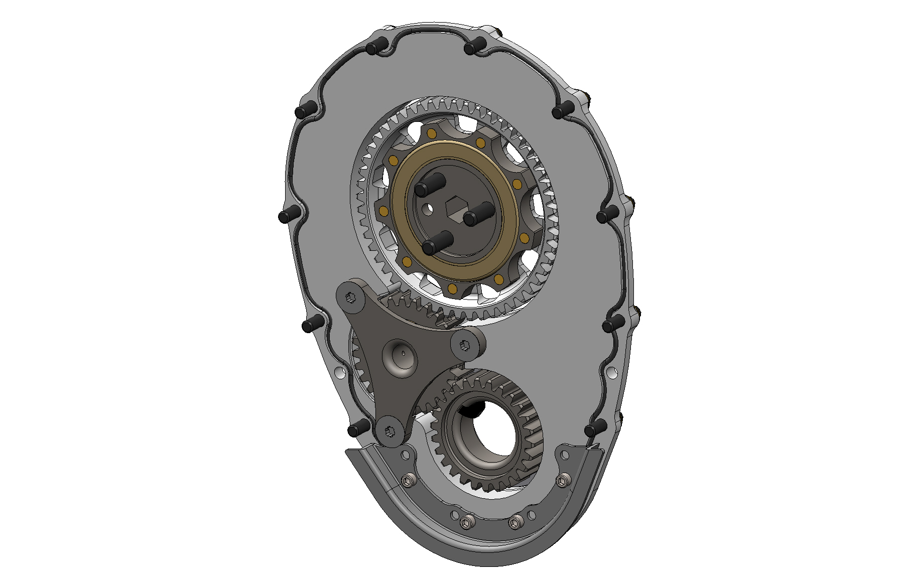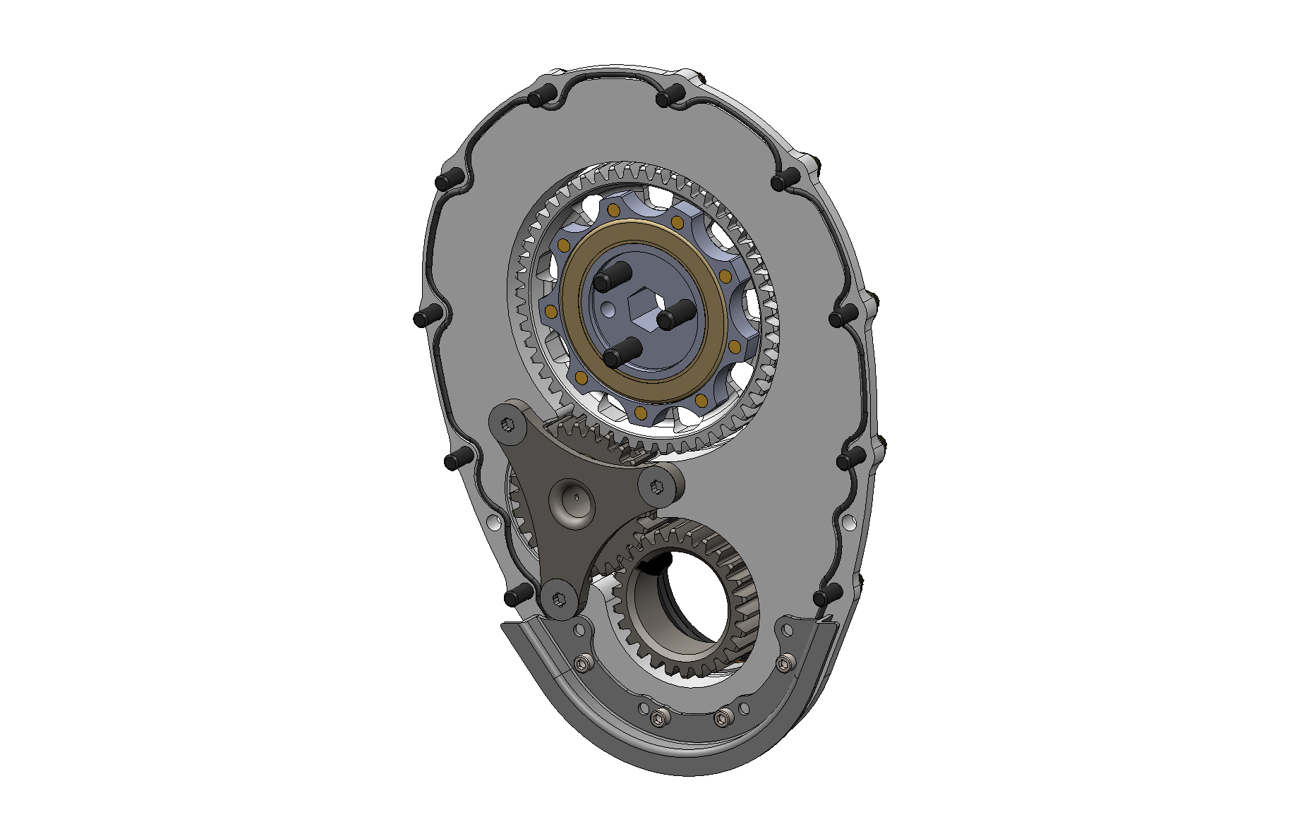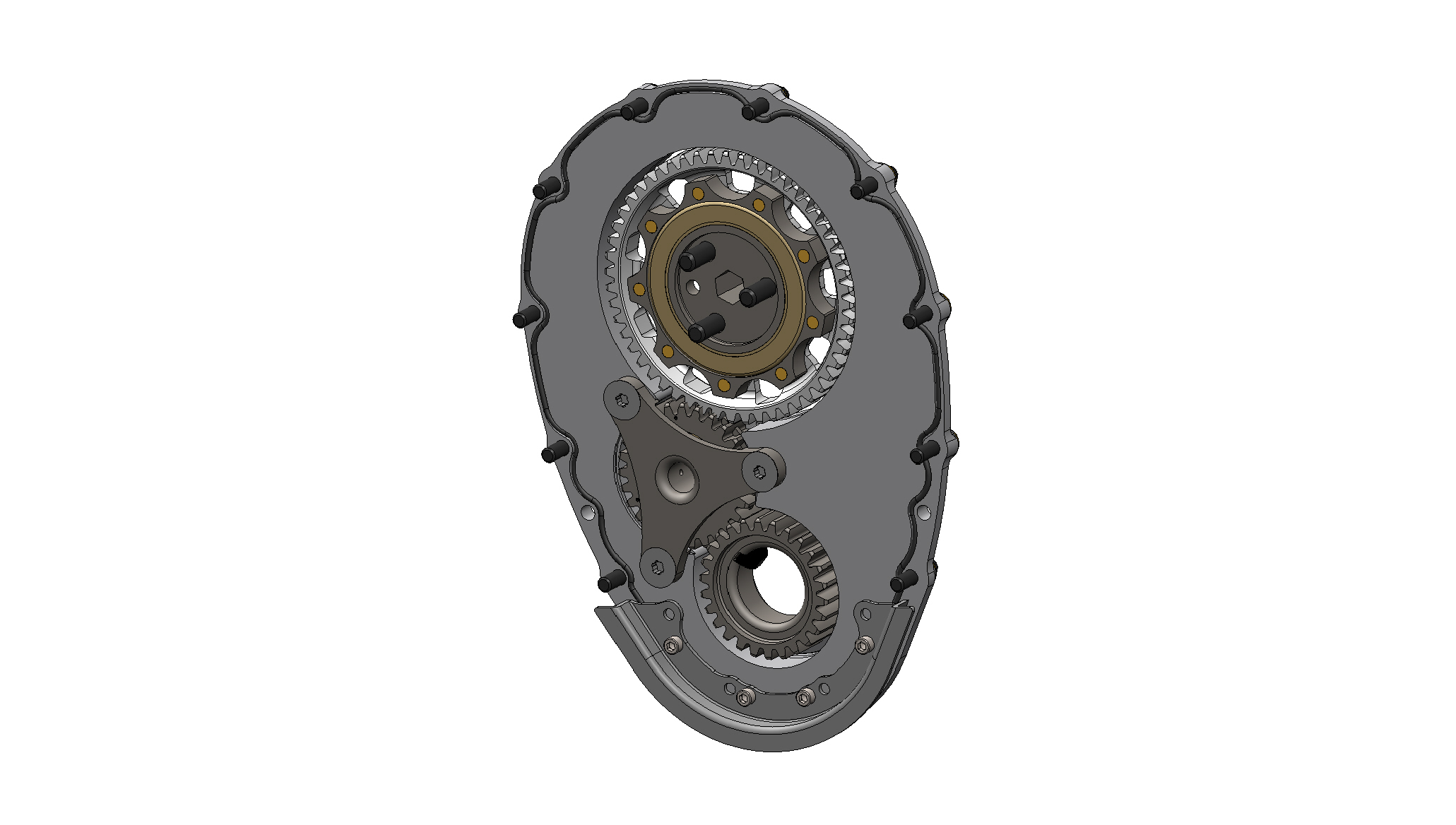 This standard cam SBC gear drive has a 1/2" drive hex and is configured for a crankshaft with a BBC snout.