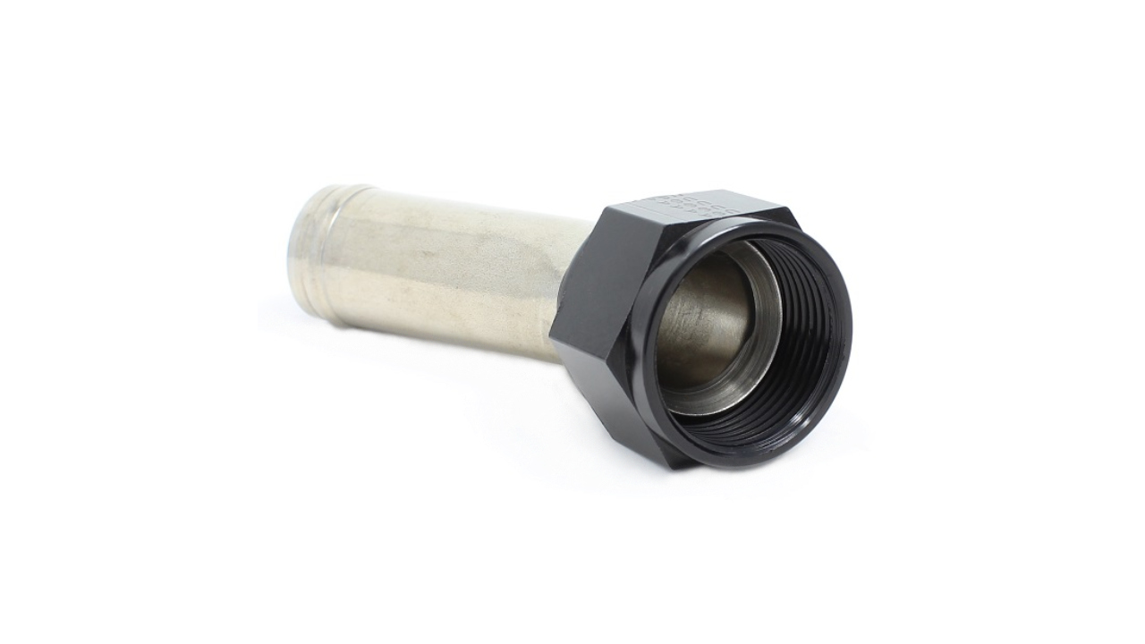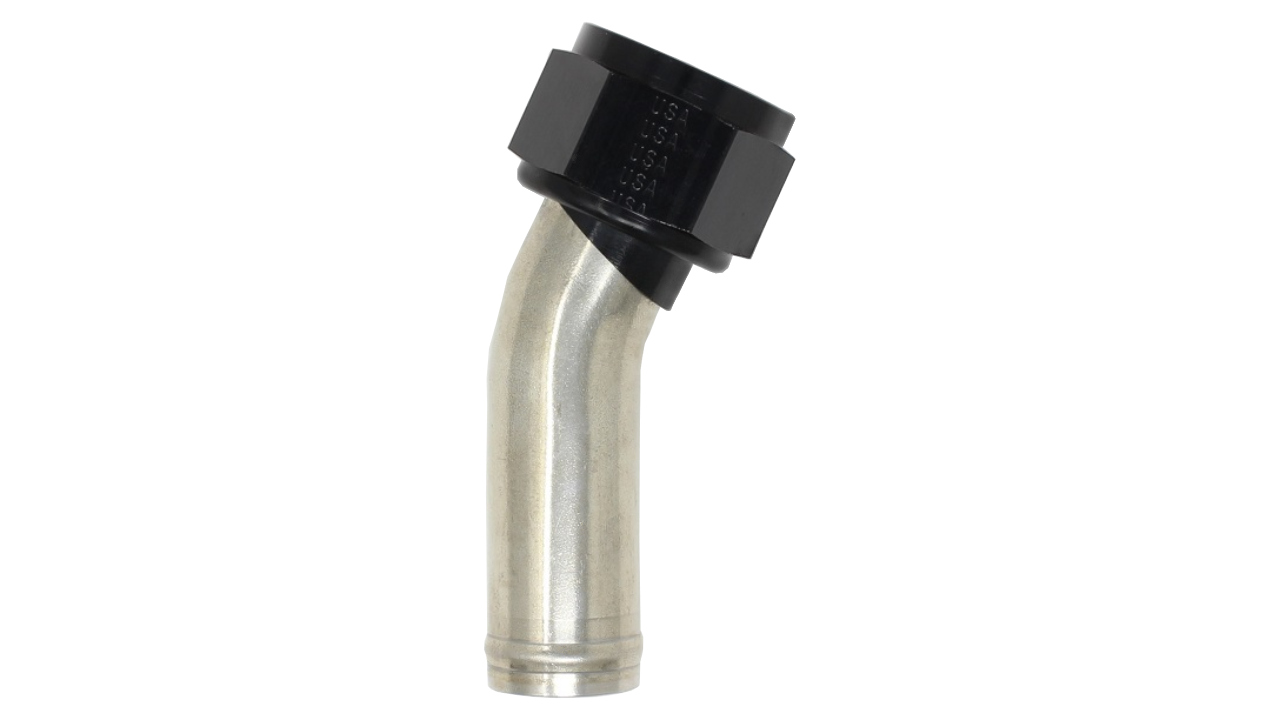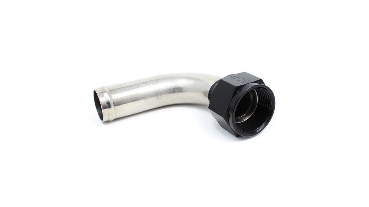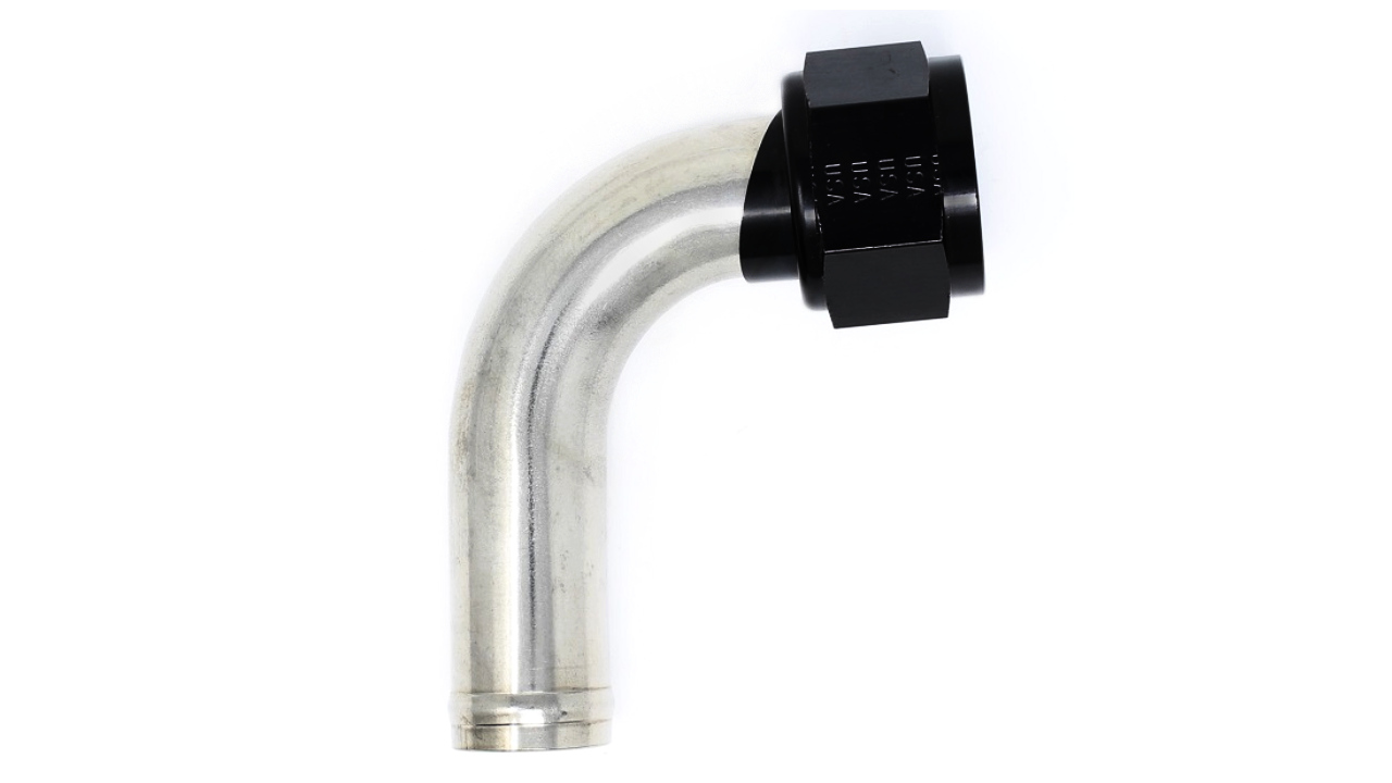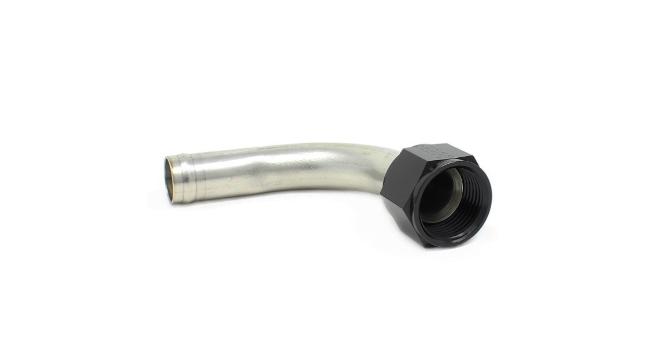 This 3/4" stainless steel tube is bent to a 90 degree angle.
