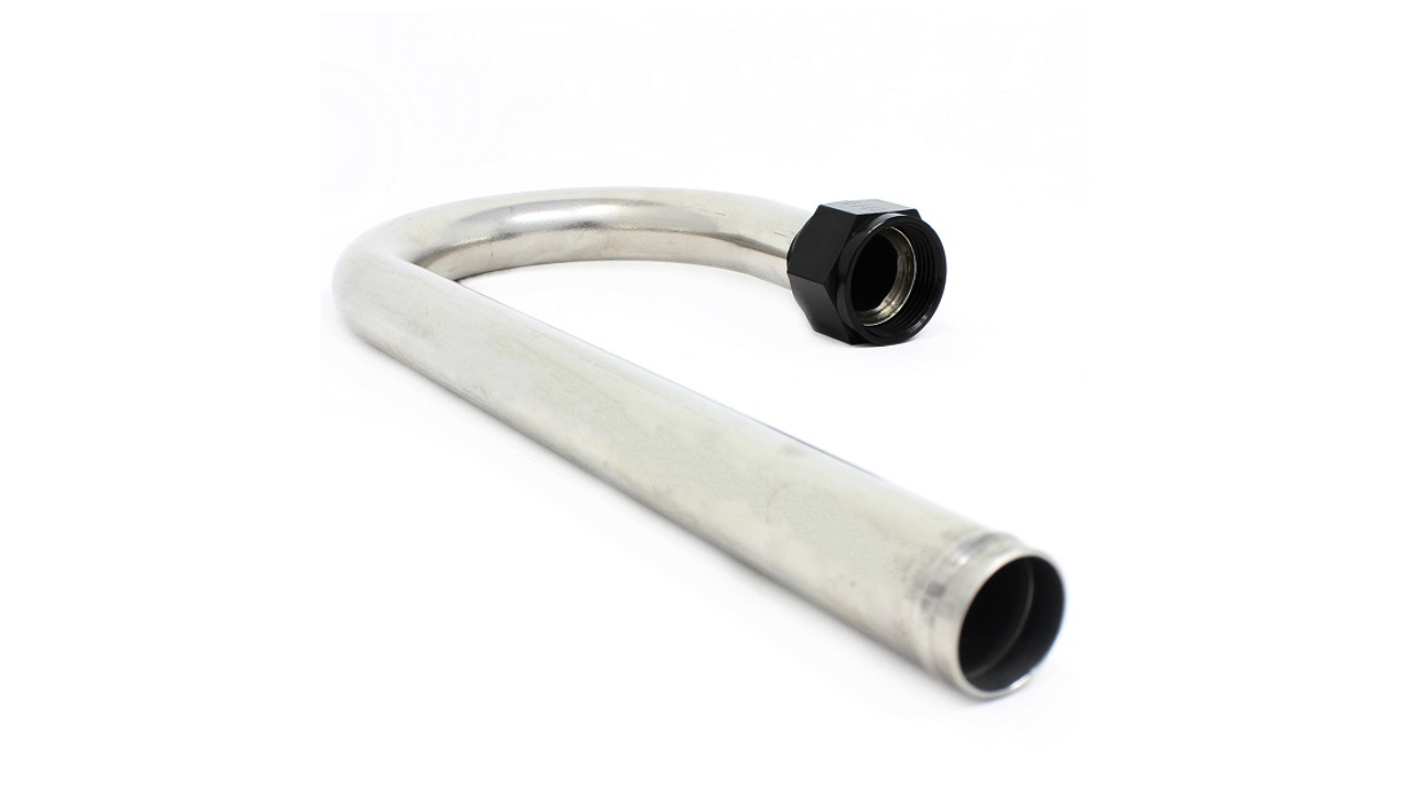 This 1" stainless steel tube is bent to a 185 degree angle.
