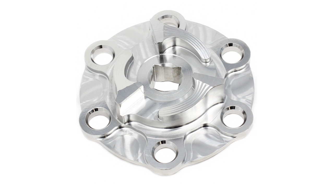 This standard 6 hole engine jaw has standard rotation and has been machined from titanium.