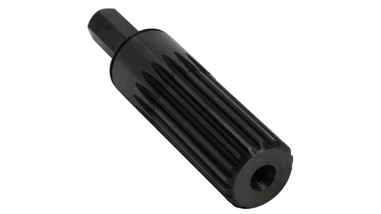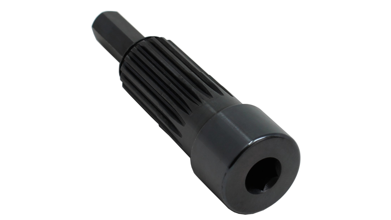This shaft is 2.5" long with a 3/8" female hex on one end.