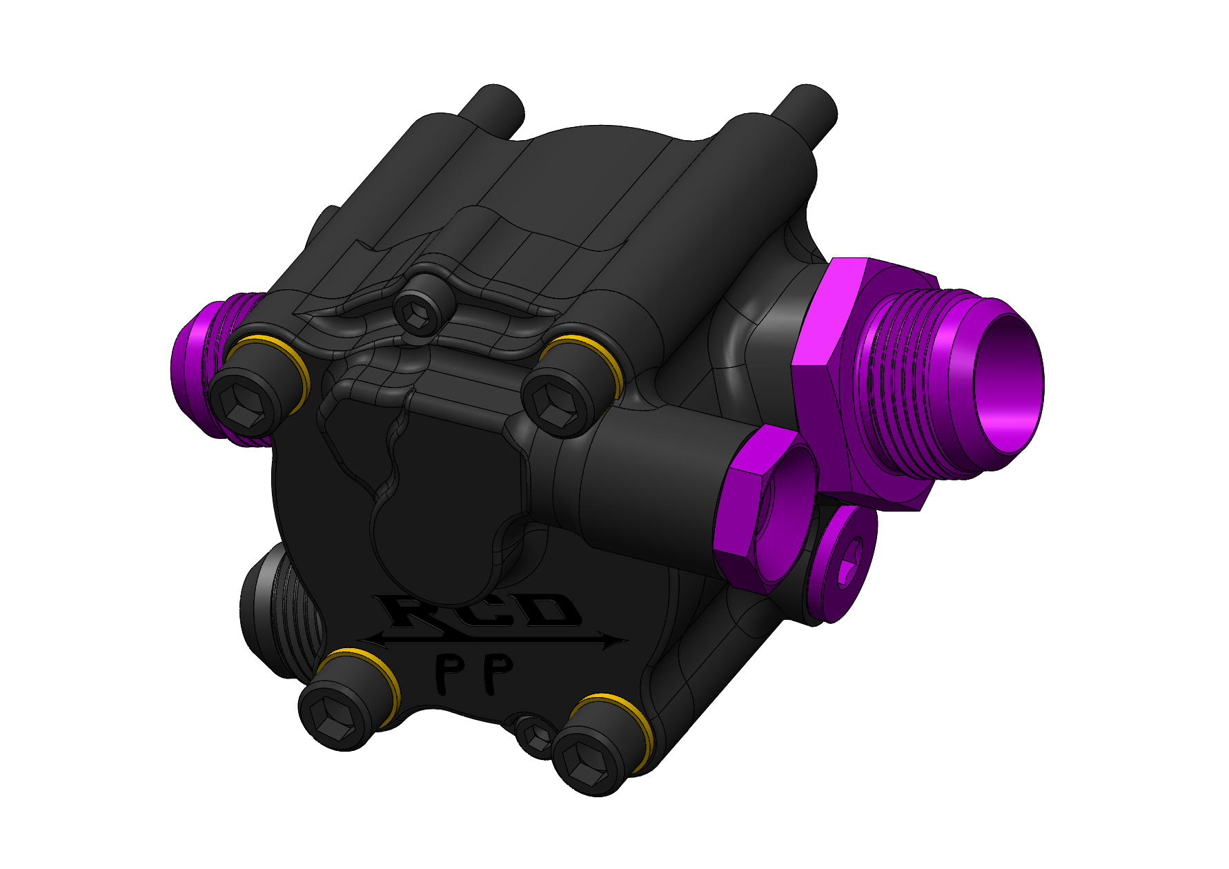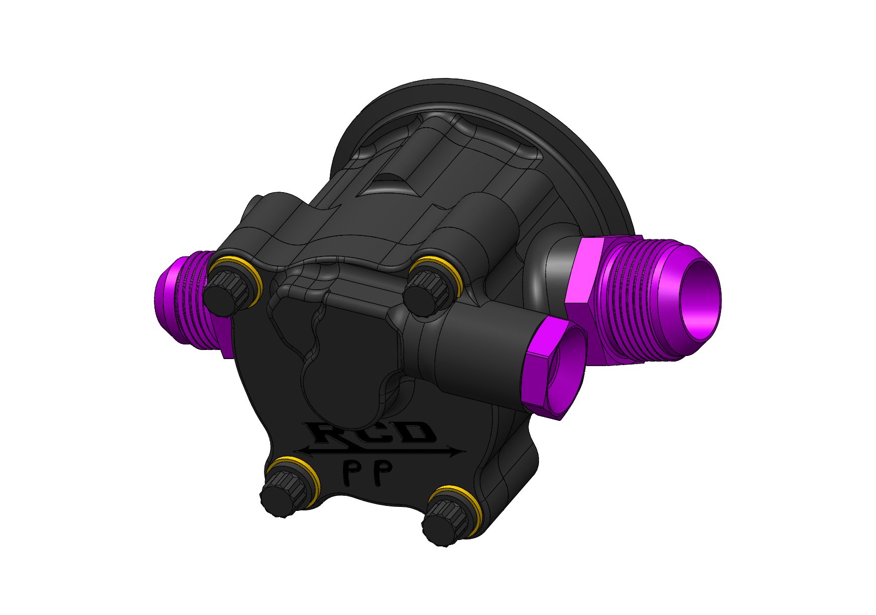 This wet sump pump is configured to clamp to a tri-drive, it has a weight of approximately 4.7 lbs.